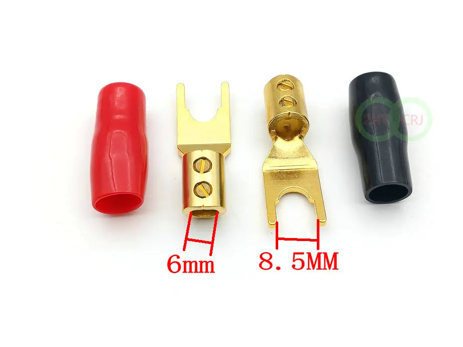 Características:Cantidad: Chapado en oro (10 negro + 10 rojo).Características:Material: latónDiámetro interior de la abertura final: aprox. 6mmDoble Bloqueo de tornillo, sin soldadura, fácil de usarAncho interior de la horquilla: aprox. 8,5mmCondición: 100% nuevo