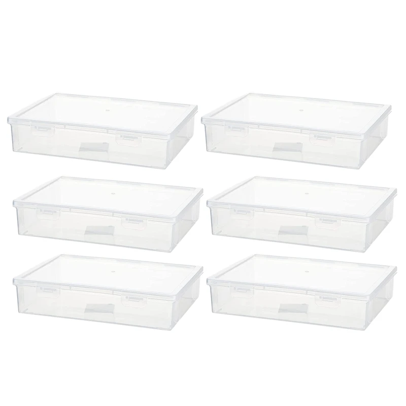 Comprar HOT-caja de almacenamiento de plástico de 6 piezas con tapa, organizador multiusos para manualidades, contenedores de plástico, estuche transparente para lápices