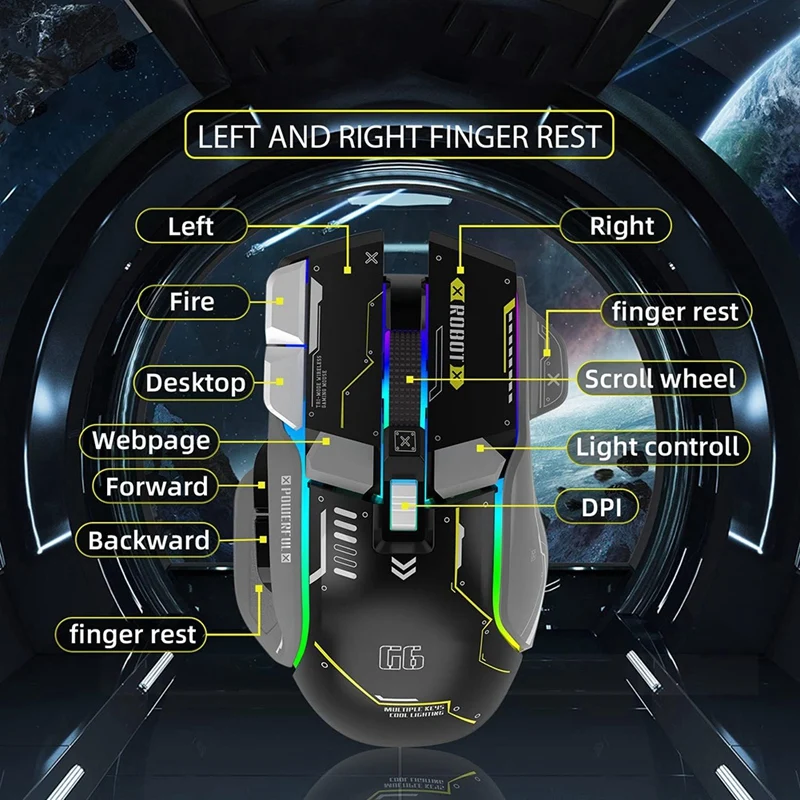 Modos de ratón para juegos: Los ratones para juegos con combinación de colores única proporcionan modos de conexión inalámbrica, y cada conexión proporciona una transmisión confiable y precisa.