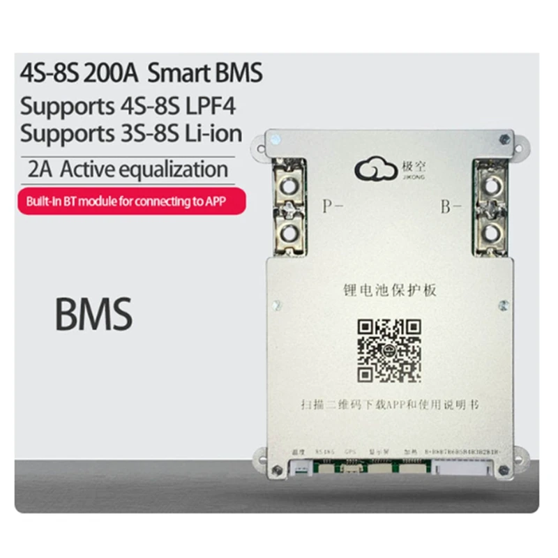 200A de corriente continua, también tiene 2A de corriente de ecualización activa. Puede configurar el voltaje de ecualización y el parámetro de protección de carga y descarga a través de la aplicación, puede mostrar la serie única de voltaje de la batería