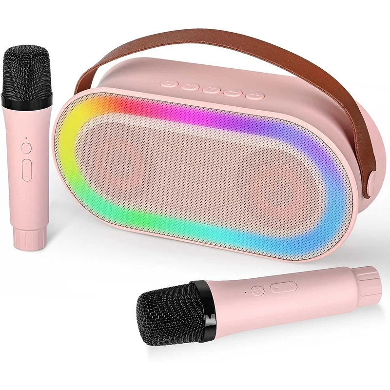 [Powerful Speakers with Two Microphones]Our karaoke machine is equipped with two microphones, powerful sound quality without distorting audio even at higher volumes. Two karaoke microphones for solo, duet or rap battles, perfect for any type of party.