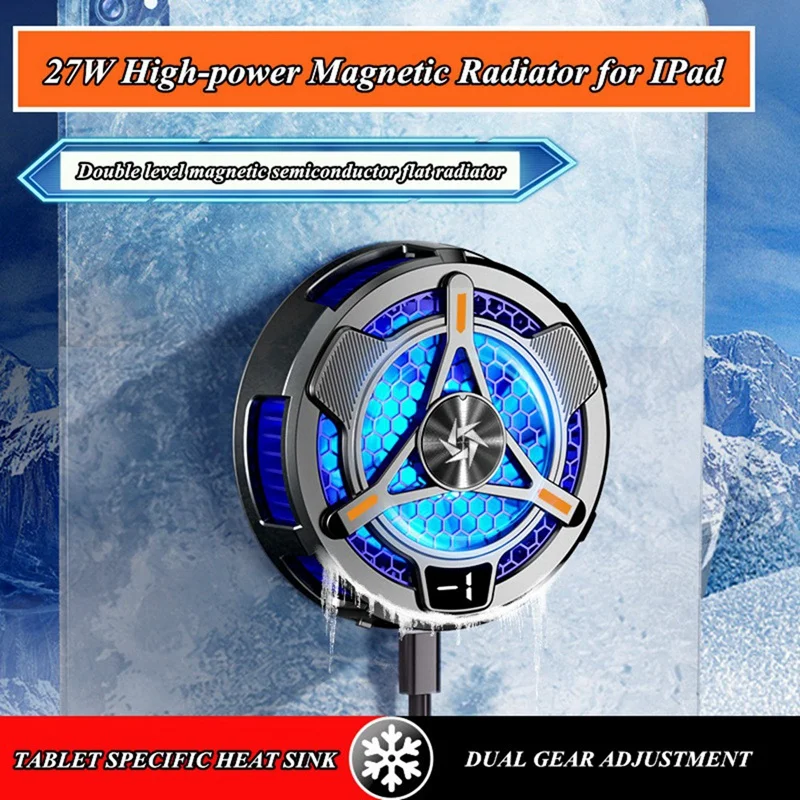 Enfriador de semiconductores: Este es un disipador de calor semiconductor de absorción magnética diseñado específicamente para tabletas, con una salida de alta potencia de 27W, enfriamiento fuerte y pantalla digital de temperatura inteligente, enfriamiento de 2 engranajes. Su disipador térmico de tableta preferido. Ajuste de 2 marchas: Primera marcha: 0-5 °C, Segunda marcha:-5-0 °C