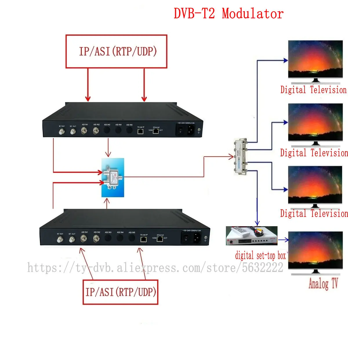 Comprar Hotel modulador Dvb-t2. Equipo de cabecera de TV por cable Ip a Rf Asi a Rf Tdt Modulador Modulador de multiplexión digital