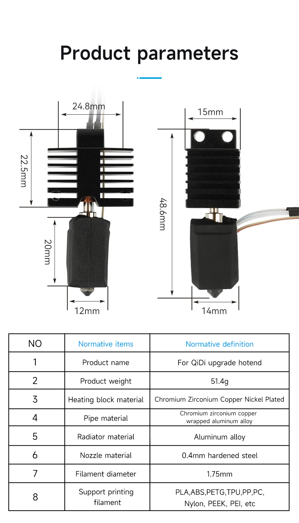 Hotend actualizado para Qidi X plus 3 / X max 3 / x smart 3 / Q1 Pro accesorios de impresora 3D Hotend