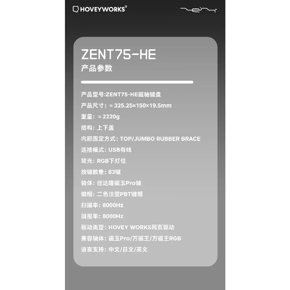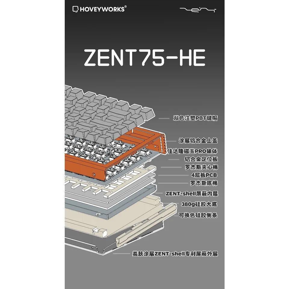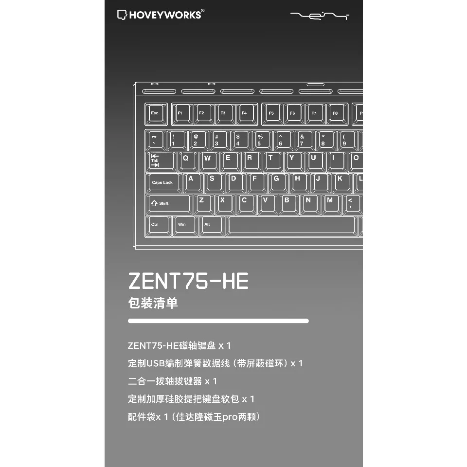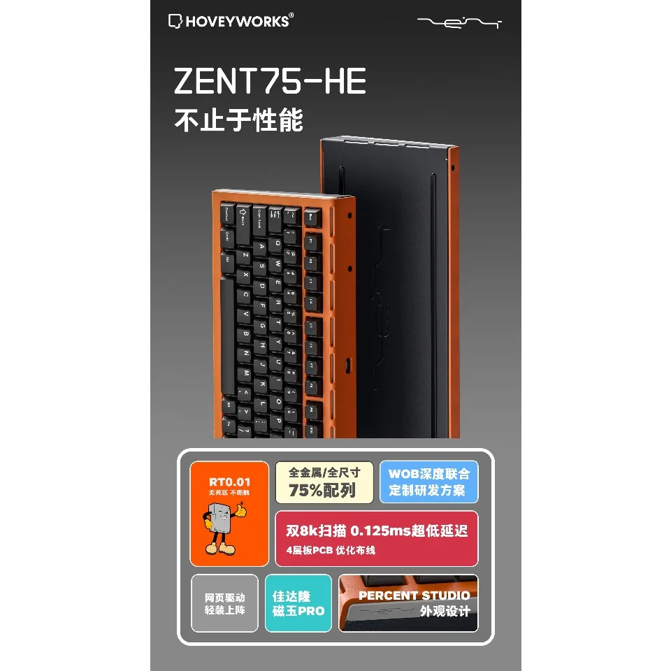 HOVEYWORKS ZENT75-HE Wired Magnetic Switch Keyboard Aluminium RGB 8KHZ Gateron Pro Custom Esports Gaming Mechanical Keyboard