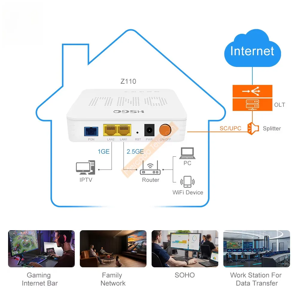HSGQ-Z110, configuración compacta, estable y silenciosa a baja temperatura, puente simple y fácil sin control del operador, a 2. Puerto de red 5G y un puerto de red 1G, que puede reemplazar las líneas GPON XGPON EPON de banda ancha (consulte la placa de identificación en la parte posterior), admite IPTV, no admite 10GPON, protocolo XGPON puro, no admite función telefónica y no tiene función WIFI. Equipado con equipos con una velocidad superior a 2,5 G, la marcación óptica medida del gato y la marcación en puente pueden ejecutar toda la banda ancha gigabit (la velocidad se ve afectada por el límite de velocidad del equipo de medición de velocidad de marcación hacia arriba, los nodos de medición de velocidad y los operadores).