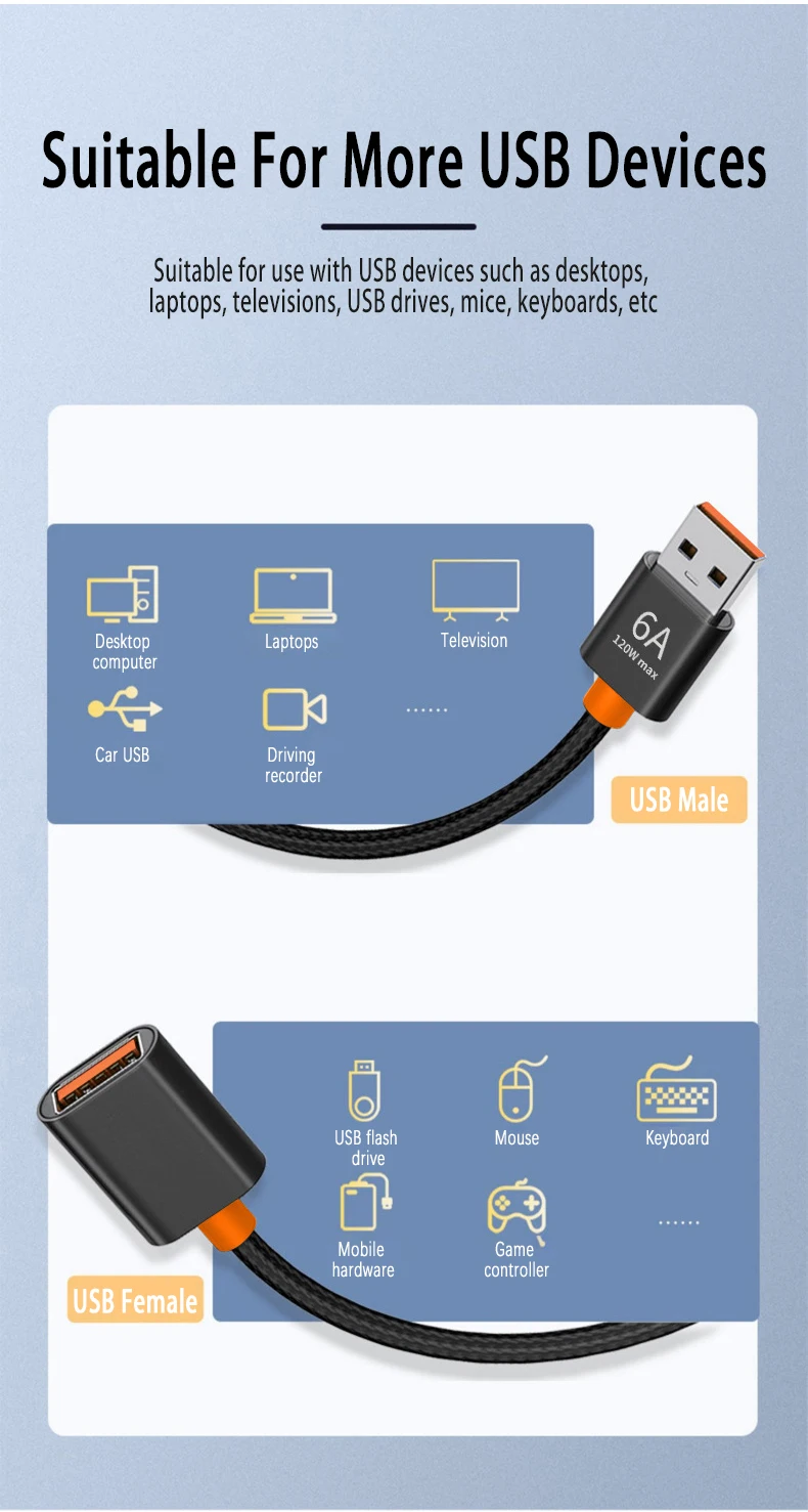 Comprar HTHAI Z30-Cable de extensión USB para impresora, Cable de datos 6A3.0 de 1,5 m, para monitoreo, teclado, ordenador, conexión de extensión 2,0