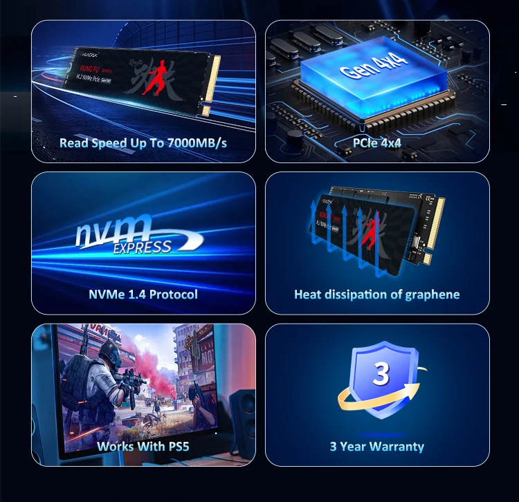 4. m.2 NVMe PCIe 4,0 SSD ofrece una variedad de capacidades para que usted elija (1TB, 2TB, 4TB), que para satisfacer sus necesidades para diferentes escenarios.