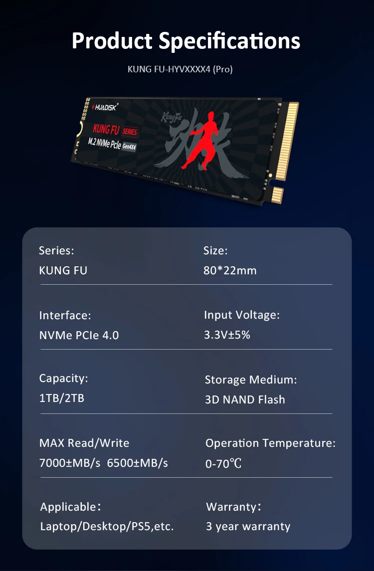 3. El huadisk SSD está equipado con el control maestro original y las partículas menory flash originales. Se puede usar con varias cargas, ya sea su trabajo diario o jugar juegos a gran escala, y puede manejarlo fácilmente.