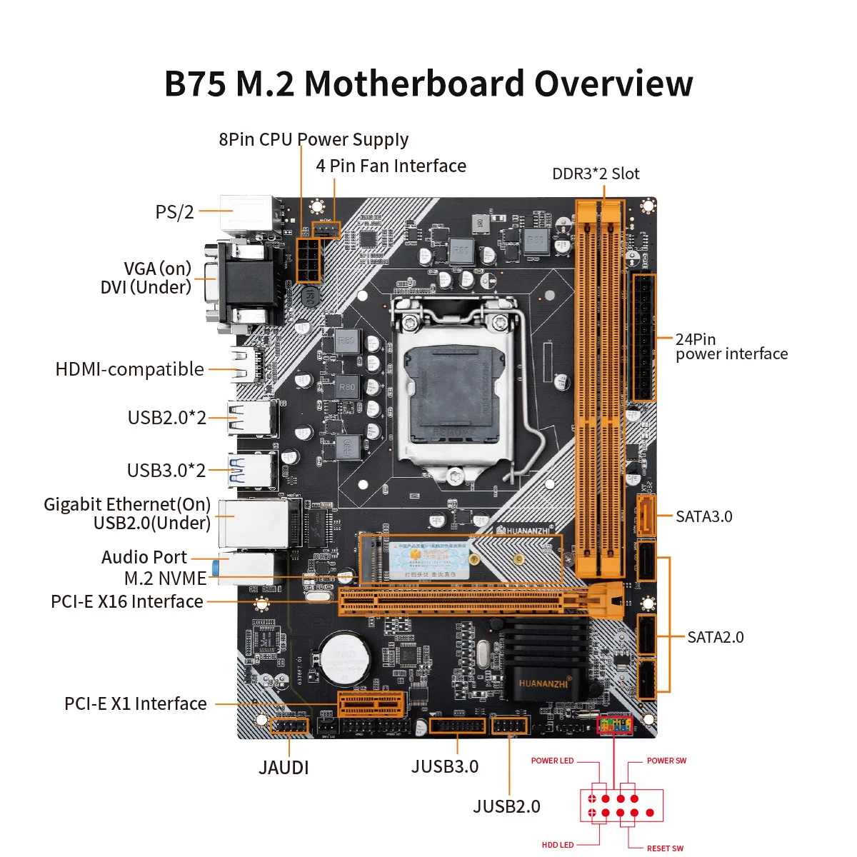 Comprar HUANANZHI-placa base B75, M-ATX con Intel Core i5 3570 y 2x8GB DDR3, kit combinado de memoria de NON-ECC, SATA3.0, USB3.0, VGA + DVI + HDMI