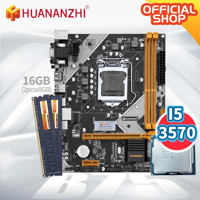 Comprar HUANANZHI-placa base B75, M-ATX con Intel Core i5 3570 y 2x8GB DDR3, kit combinado de memoria de NON-ECC, SATA3.0, USB3.0, VGA + DVI + HDMI
