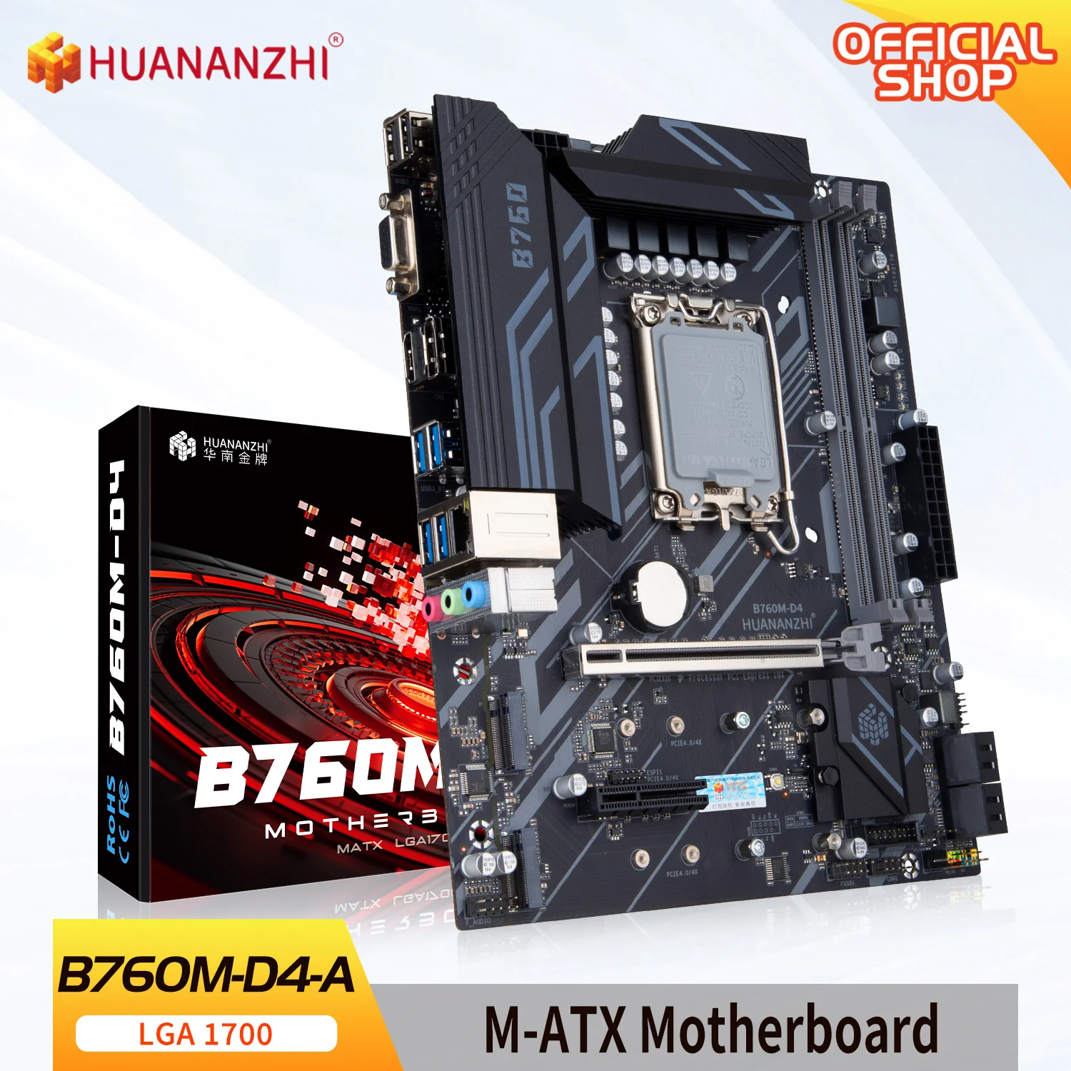 Comprar HUANANZHI-placa base B760M D4 M-ATX DDR4, compatible con 12 13 Gen, Intel LGA 1700 CPU 12100F/12400F/12490F/12600F/12700F/13600F