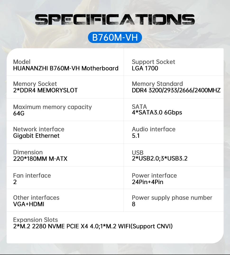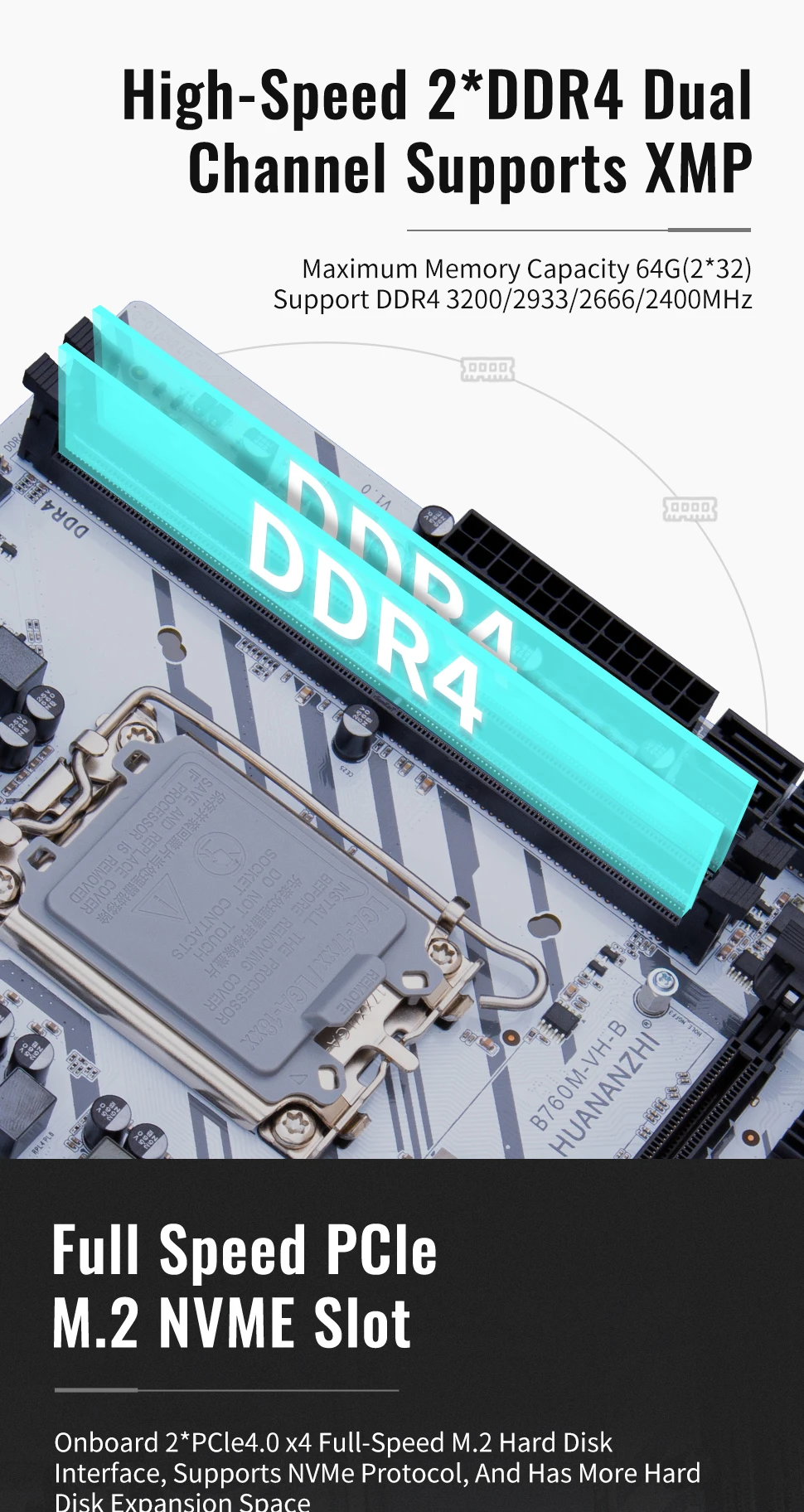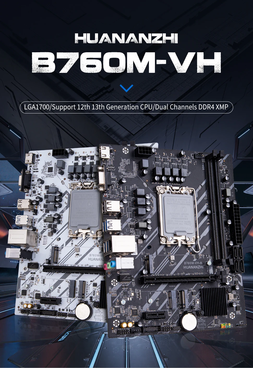 Comprar HUANANZHI-placa base B760M VH A M-ATX DDR4, compatible con 12 13 Gen B760 Intel LGA 1700 CPU 12100F 12400F 12490F 12600F 12700F 13600F