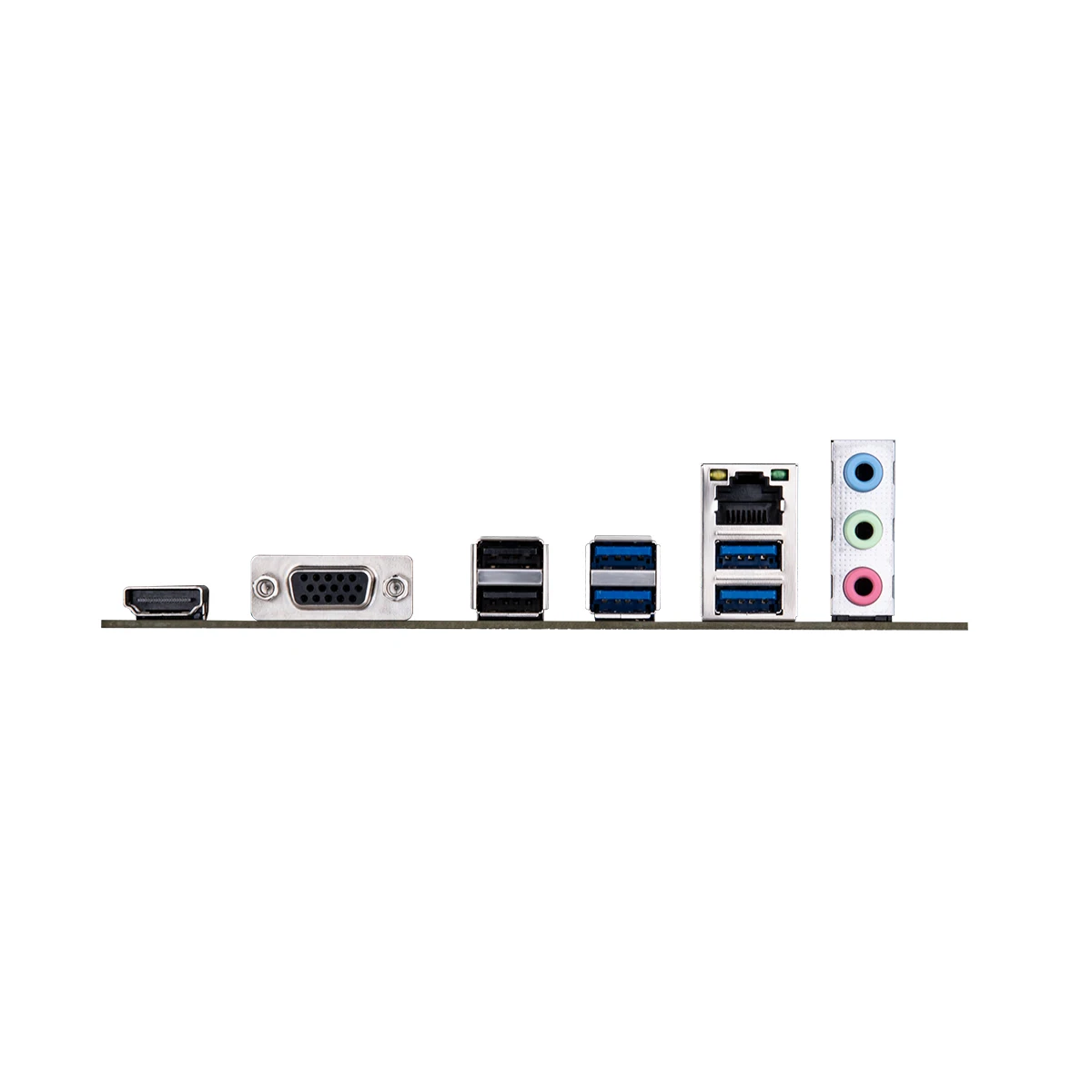 Interfaz del panel trasero: 2xUSB2.0 480Mbps,2xUSB3.2 10Gbps,2xUSB3.2 5Gbps, 1xInterfaz de tarjeta de red, 1xInterfaz de audio de 3 orificios, 1xInterfaz VGA, 1xInterfaz HDMI 2,0