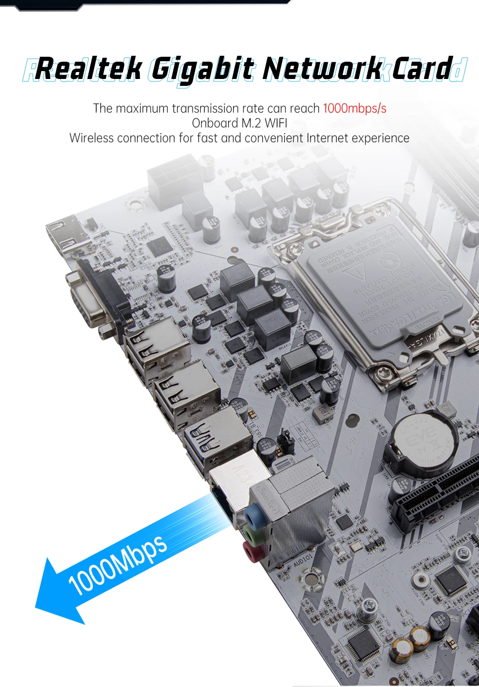 Interfaz del panel trasero: 4xUSB2.0 480Mbps,2xUSB3.2 10Gbps, 1xInterfaz de tarjeta de red, 1xInterfaz de audio de 3 orificios, 1xInterfaz VGA, 1xInterfaz HDMI2.0