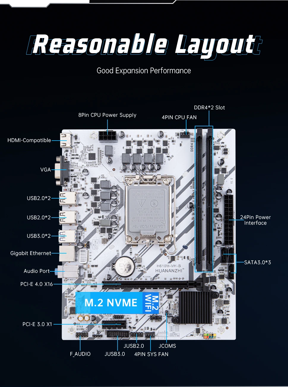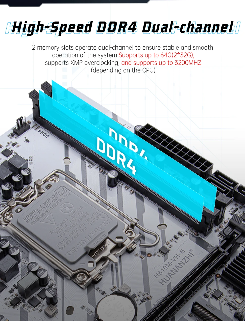 Comprar HUANANZHI-placa base H610M VH A M-ATX DDR4, compatible con 12 13 Gen H610 Intel LGA 1700 CPU 12100F 12400F 12490F 12600F 12700F 13600F
