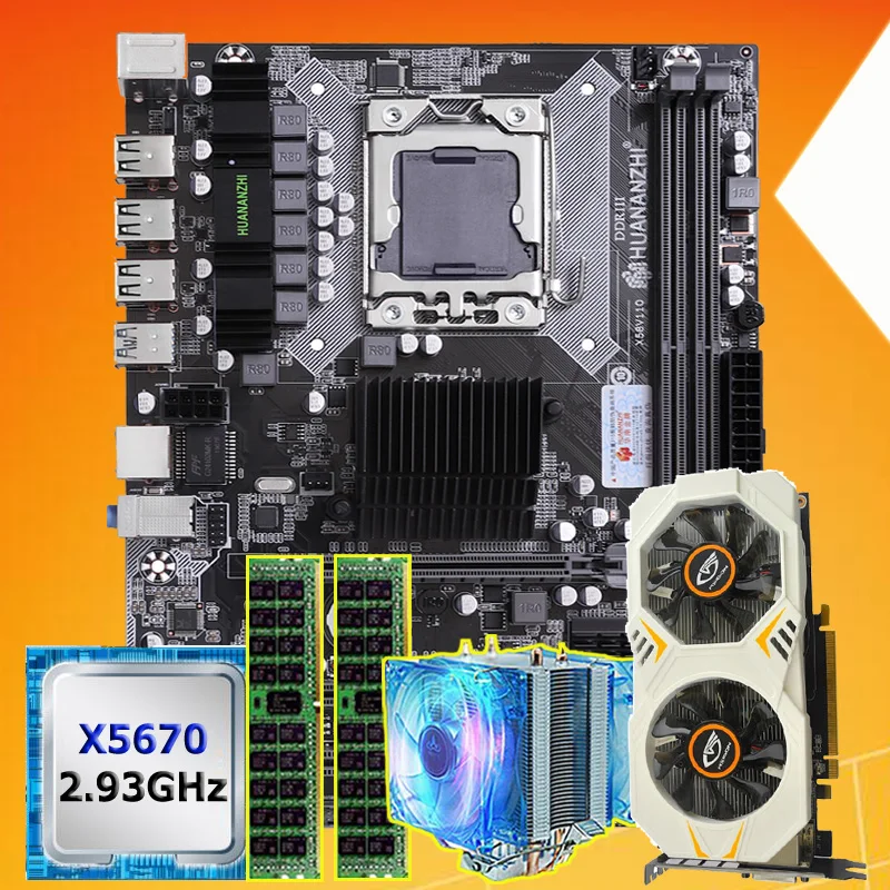 Comprar HUANANZHI-placa base X58 LGA 1366 Combo Xeon X5670 2,93 GHz CPU Cooler 2x8G 16G RAM RECC GTX750Ti tarjeta de vídeo 2G ordenador DIY