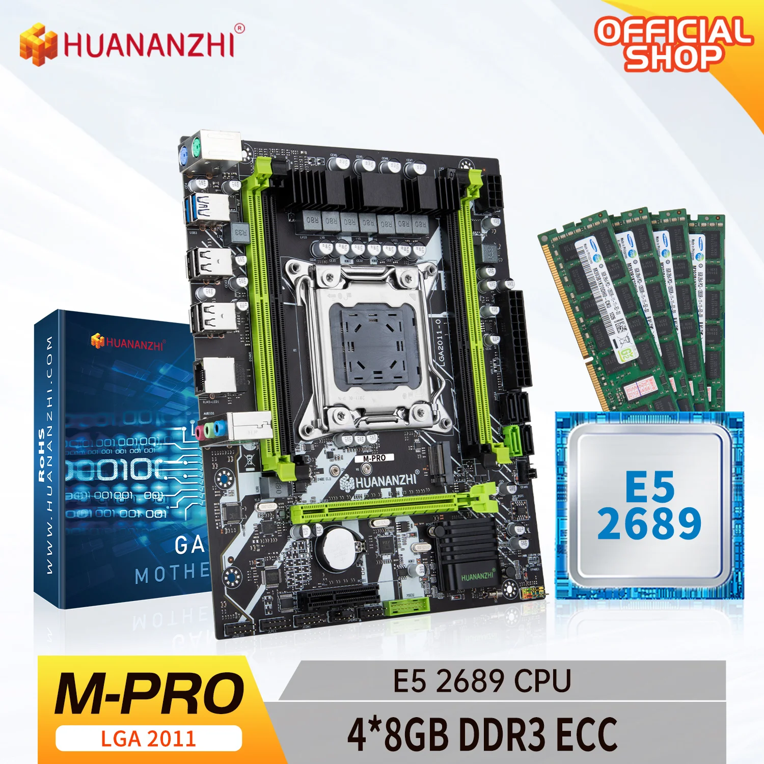 Comprar HUANANZHI-placa base X79 M PRO LGA 2011 XEON X79 con Intel E5 2689, kit combinado de memoria DDR3 RECC de 4x8GB, NVM
