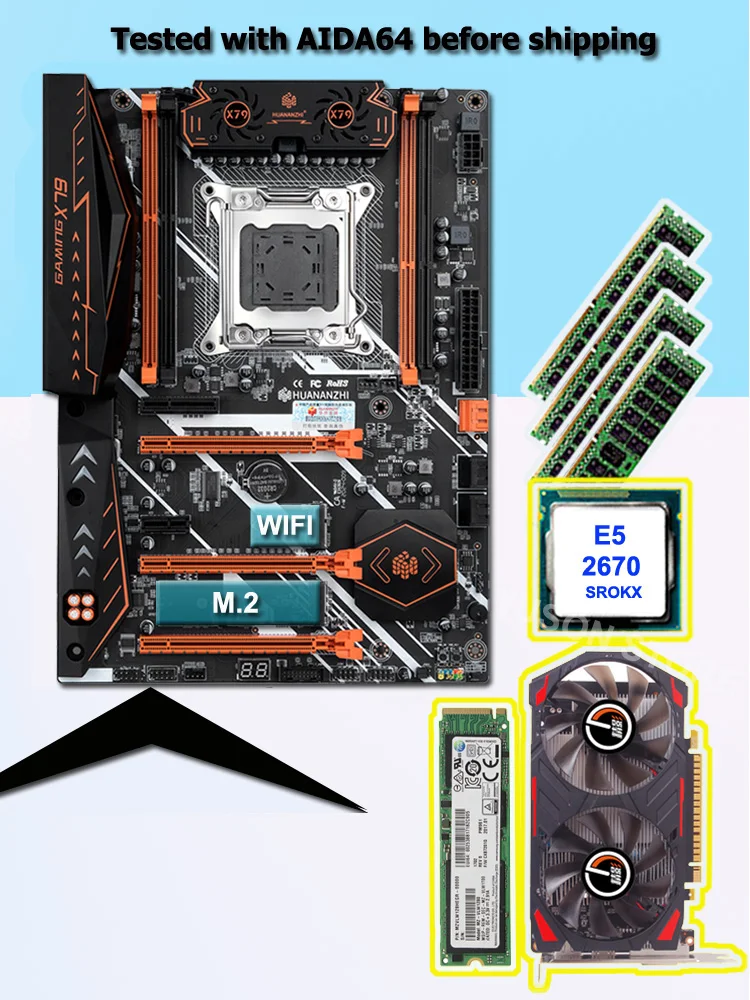 Comprar HUANANZHI-placa base X79 para videojuegos, componente con M.2, 128G, NVME, SSD, GPU, GTX750TI, 2G RAM, 4x8G, 1600 RECC, CPU Intel Xeon E5 2670, 2,6 GHz