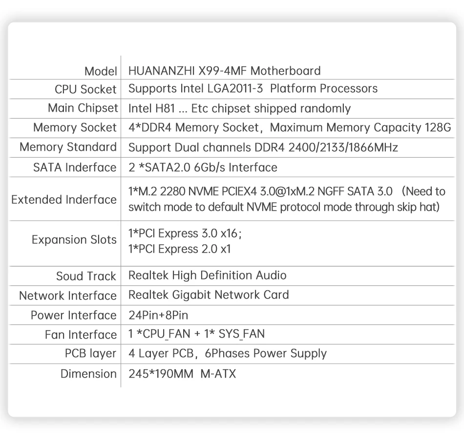 7. Debido a que los accesorios de la computadora son demasiados, es probable que tengan alguna marca pequeña, mala calidad o versión ES/QS DE LA CPU, RAM, M. 2 SSD u otros accesorios pueden no ser compatibles con la placa base. Confirme con nuestro servicio de atención al cliente antes de comprar. Si no hay confirmación antes de la compra, entonces la incompatibilidad sucederá cuando reciba la placa base, no aceptaremos un reembolso, cuando compra este enlace de una sola placa base por defecto ha leído y conoce la situación. ¡Cuidado, por favor, no compre!