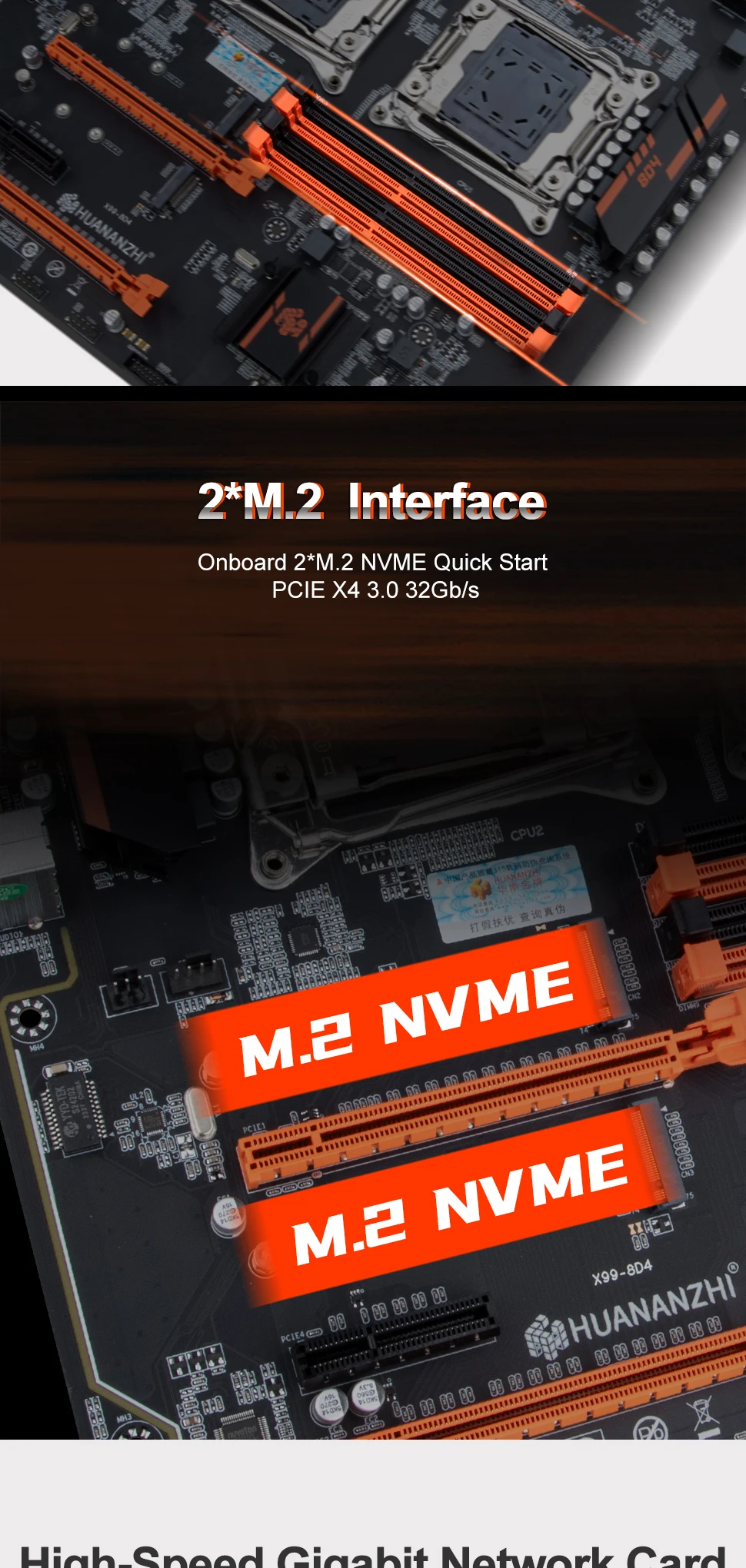 Comprar HUANANZHI-placa base X99 8D4 LGA 2011-3 XEON, doble CPU, compatible con E5 2640 2667 2666 2670 2680 V3 V4, memoria DDR4 RECC M.2 NVME