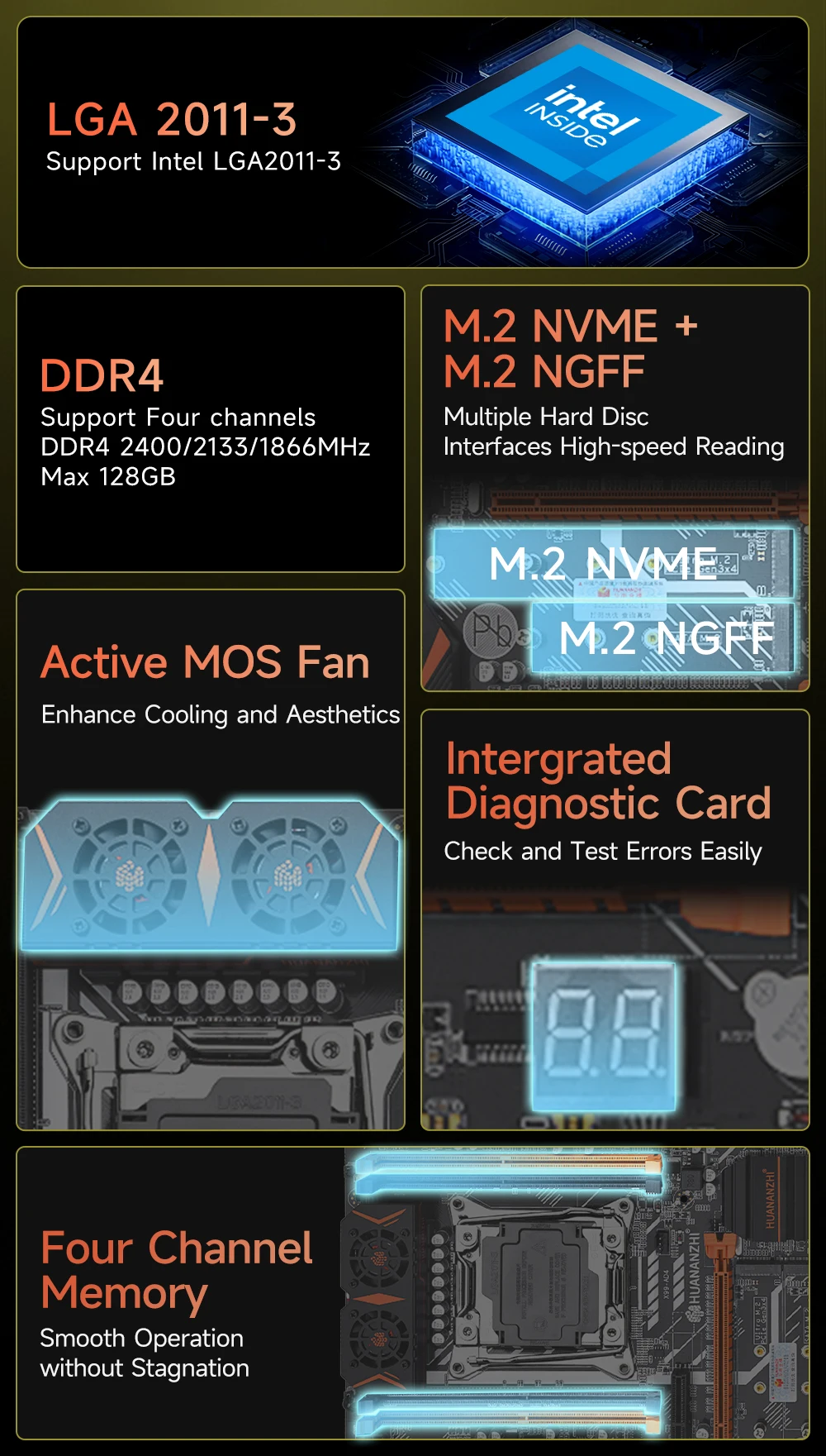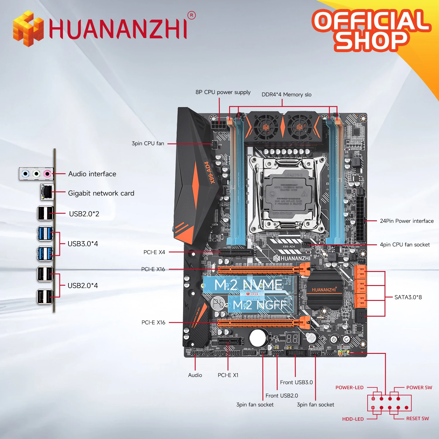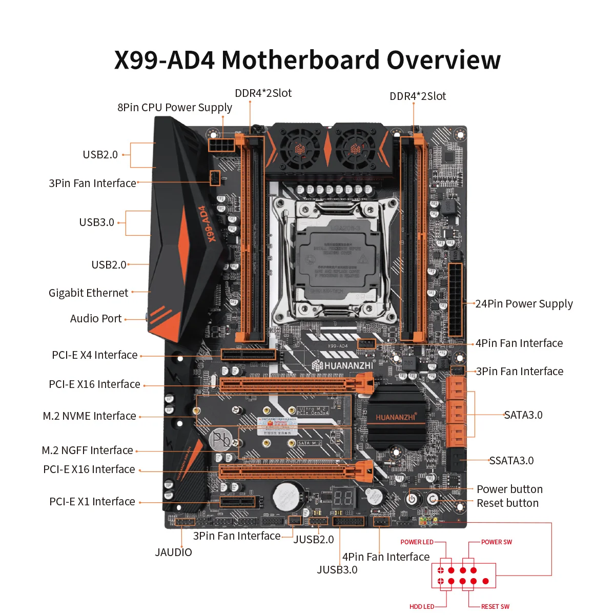 Comprar HUANANZHI-placa base X99 AD4 LGA 2011-3 XEON X99, compatible con Intel E5 2640 2666 2670 2678 V3V4 DDR4 RECC NON-ECC NVME SATA RU, 2696
