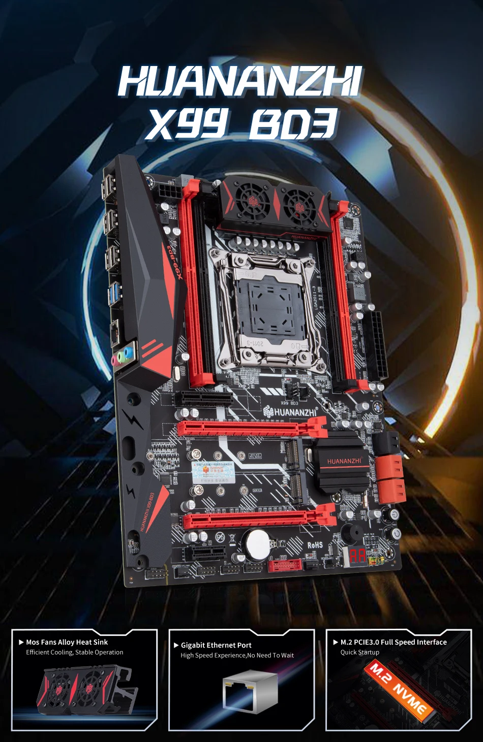 Comprar HUANANZHI-placa base X99 BD3 LGA 2011-3 XEON X99, compatible con Intel E5, 2696, 2678, 2676, 2673, 2666, V3, DDR3, RECC128GB, M.2, PCI-E, NVME, NGFF