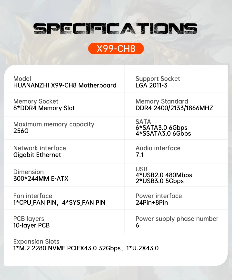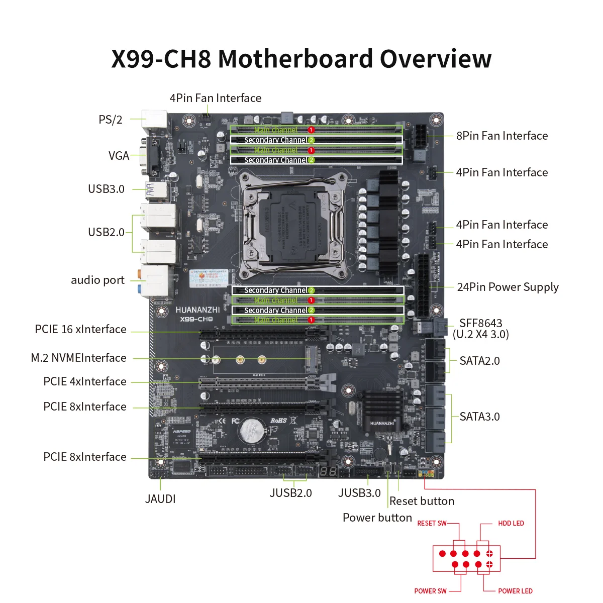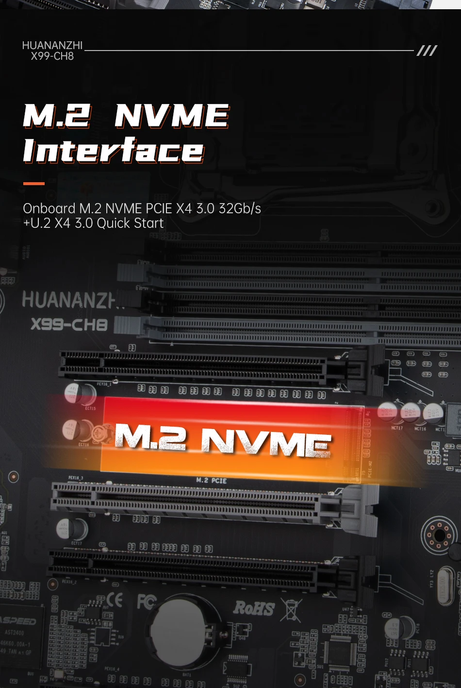 Comprar HUANANZHI-placa base X99 CH8 LGA 2011-3 XEON X99, compatible con Intel E5 2640 2666 2670 2678 V3 V4 DDR4 RECC, memoria de NON-ECC NVME