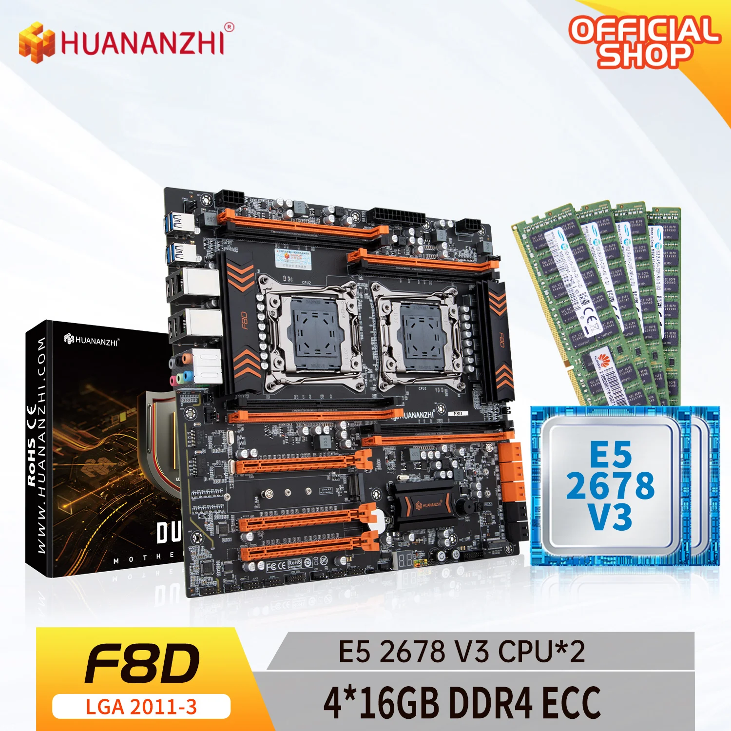 Comprar HUANANZHI-placa base X99 F8D LGA 2011-3 XEON X99 con Intel E5 2678 V3 * 2 con 4x16GB DDR4 RECC, kit combinado de memoria NVME SATA
