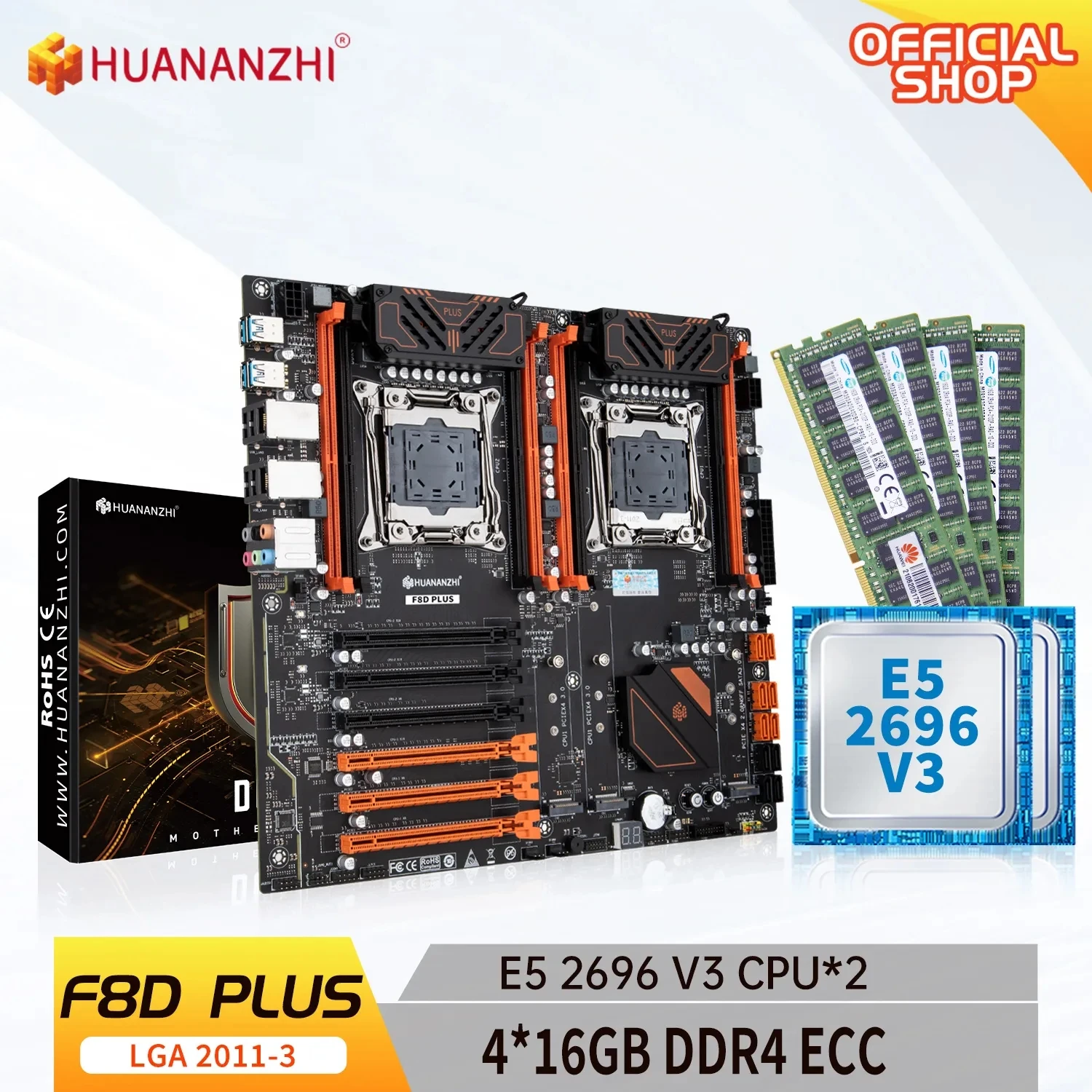 Comprar HUANANZHI-placa base X99 F8D PLUS LGA 2011-3 XEON X99 con Intel E5 2696 V3 * 2 con 4x16G DDR4 RECC, kit combinado de memoria