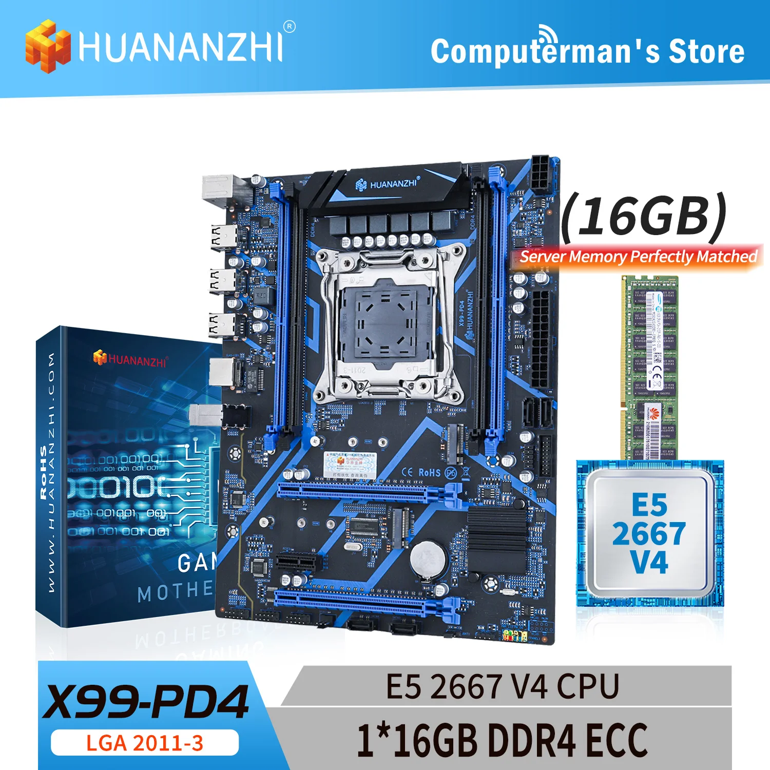 Comprar HUANANZHI-placa base X99 PD4 LGA 2011-3 XEON X99 con Intel E5 2667 V4 con 1x16G DDR4 RECC, Kit combinado M.2 NVME SATA