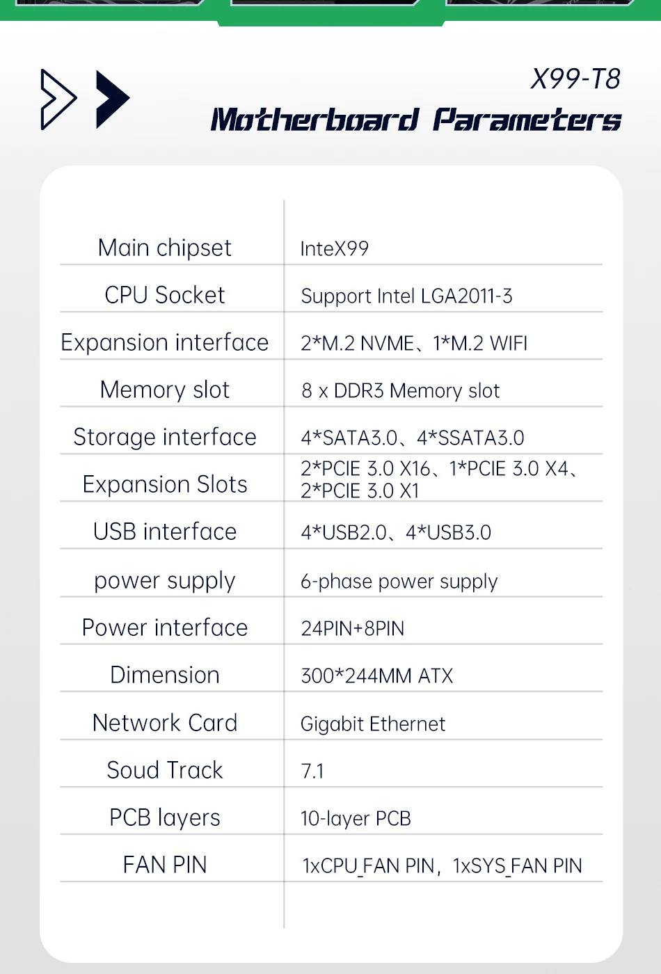 CPU Type: LGA 2011-3,X99-T8D / T8 / AD3 / BD3 / 8MD3 / 8M-T, "T" stands for "THREE", which means the motherboard USES DDR3 memory and only supports E5 2629V3/2649V3/2669V3/2696V3/2673V3/2676V3/2678V3,other type does not support or untested