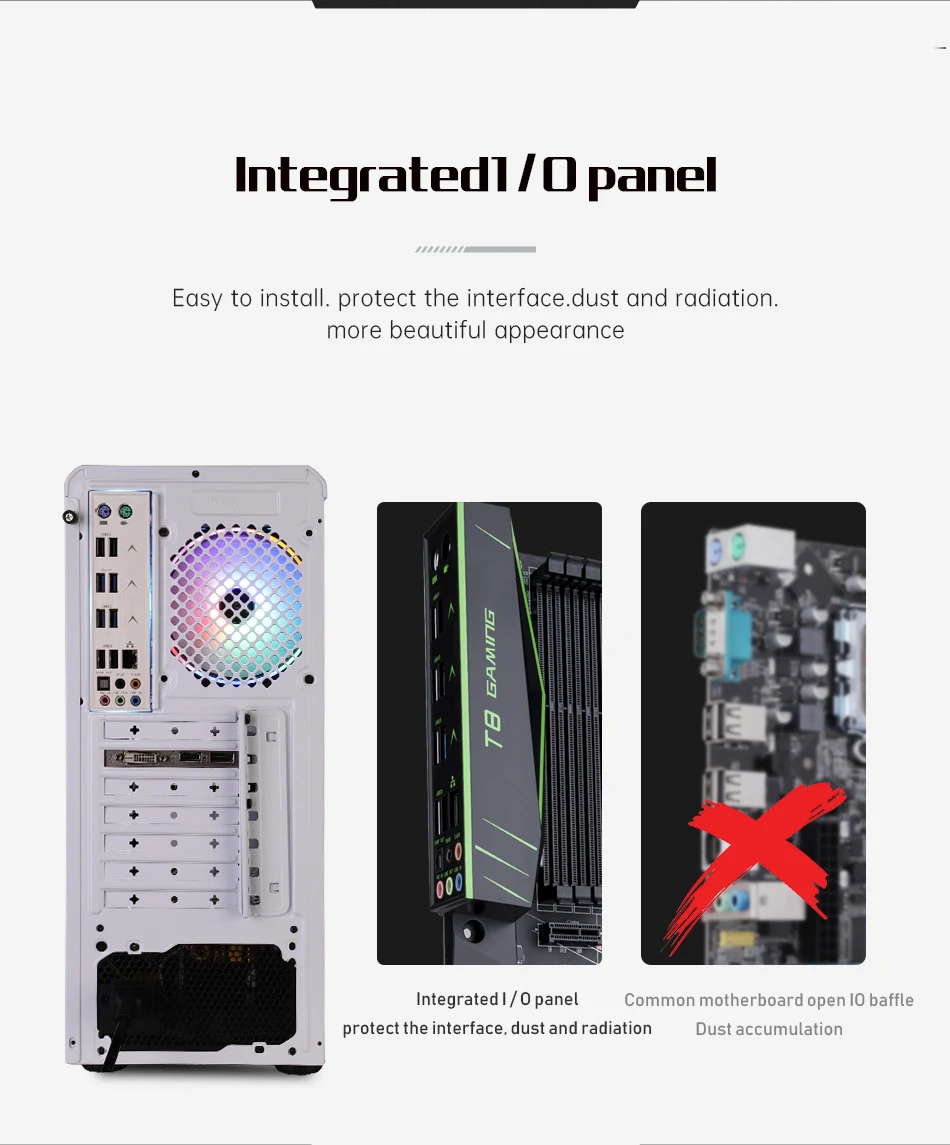 Extended Inderface:IO:*PS/2 Mouse / keyboard interface、4*USB2.0,2*USB3.0,1*Gigabit Ethernet Card,5*3.5MM Audio interface;1*Digital optical fiber audio,Expansion pin:2*9pin USB2.0,1*19pin USB3.0,1*Front audio output pin