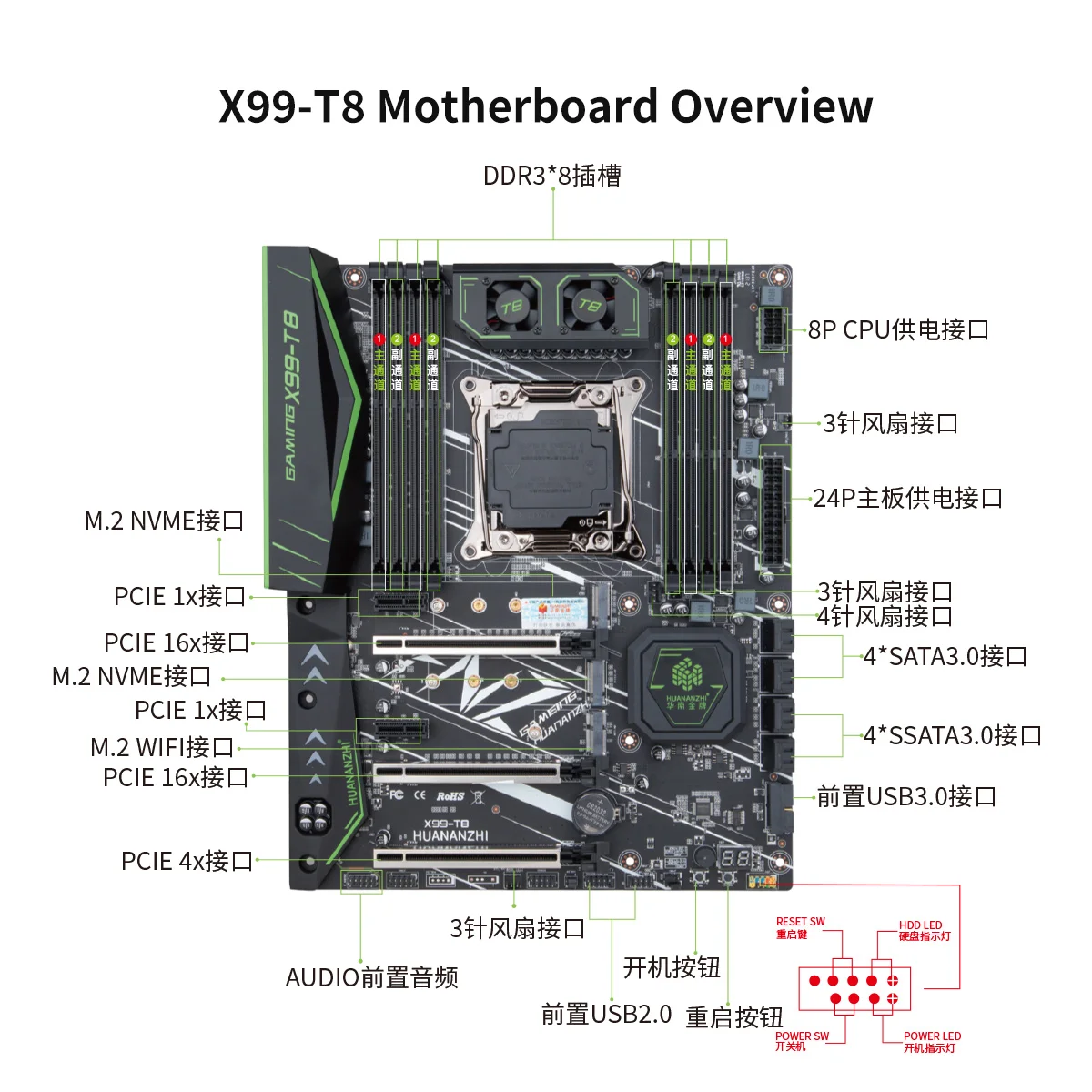 Comprar HUANANZHI-placa base X99 T8 LGA 2011-3 XEON X99, compatible con Intel E5, 2696, 2678, 2676, 2673, 2666, V3, DDR3, RECC, Memoria NVME