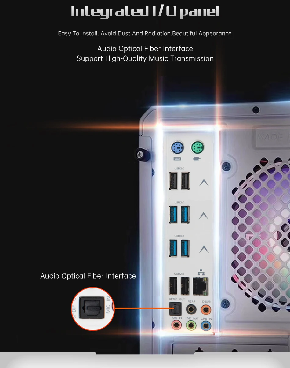 Inderface extendida: IO:1 * interfaz de ratón/teclado PS/2, 4 * USB2.0, USB3.0 4 *, 1 * tarjeta Gigabit Ethernet, interfaz de audio de 6*3,5 MM; 1 * Interfaz de audio digital, PIN de expansión: 2*9 pines USB2.0,1*19 pines USB3.0,1 * PIN de salida de audio frontal