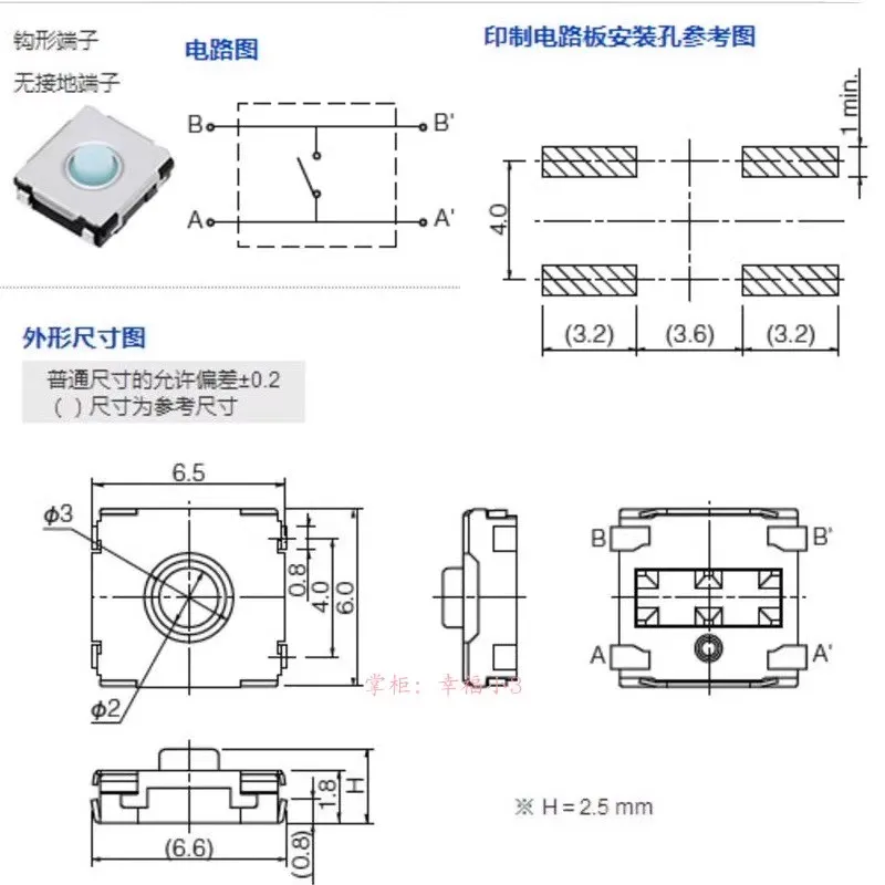 Para Panasonic 6*6*2,5mm, presión de 0,65 N, vida útil de 5 millones de clics