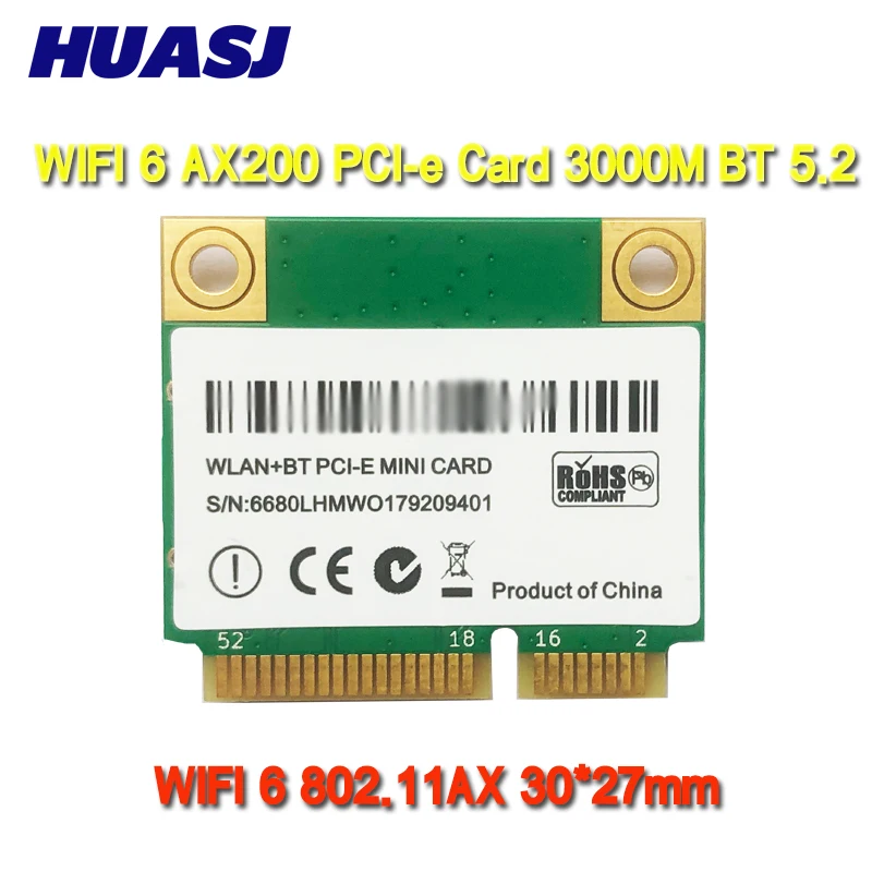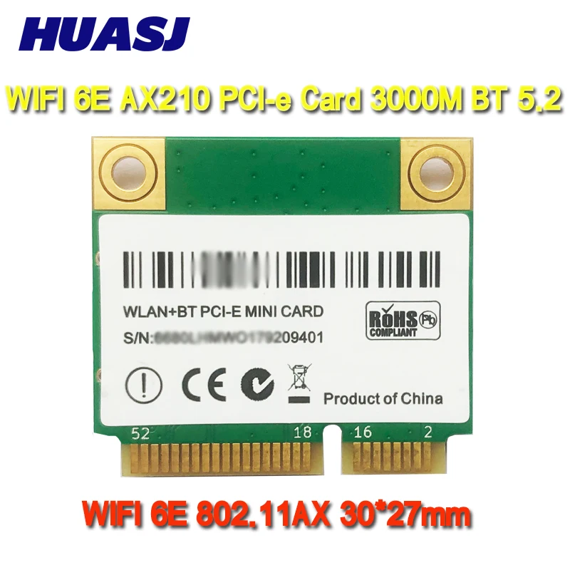Comprar Huasj-adaptador wifi 6 6e 802.11ax ax200 ax210 mini pci-e ax3000h, bluetooth 5,2, 2,4 ghz/5ghz, pk 9260ac 8265ac 7265ac 7260ac