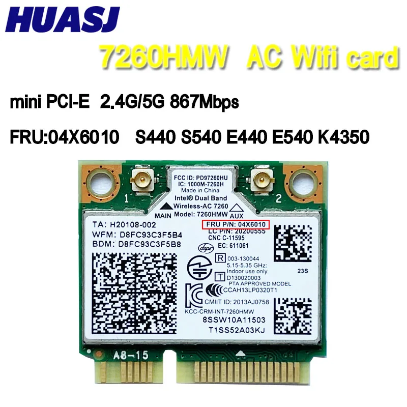 Comprar HUASJ-tarjeta WIFI 7260ac intel 7260HMW, 2,4G/5G, 867Mbps, módulo wifi 802.11ac, tarjeta Wlan para ThinkPad S440, S550, E73z, M83z, E440, K4350