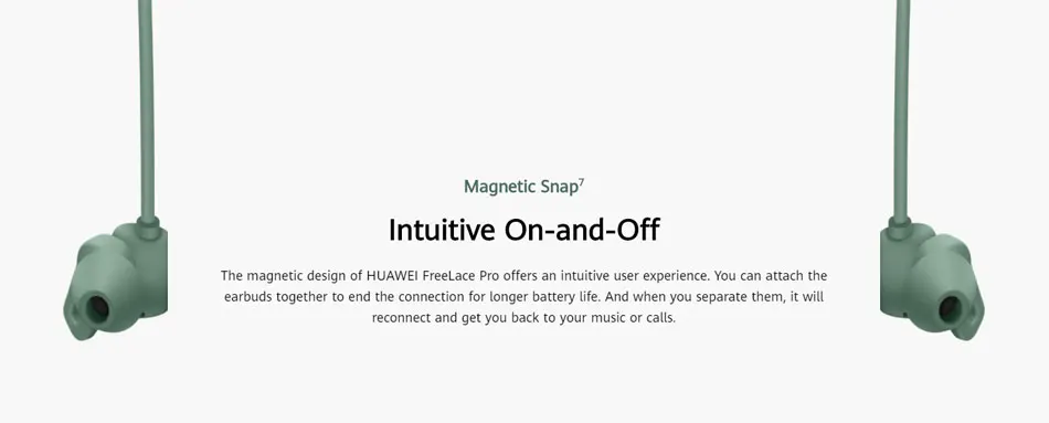 El diseño magnético de HUAWEI FreeLace Pro ofrece una experiencia de usuario intuitiva. Puede conectar los auriculares juntos para finalizar la conexión para una mayor duración de la batería. Y cuando los separe, se volverá a conectar y volverá a su música o llamadas.