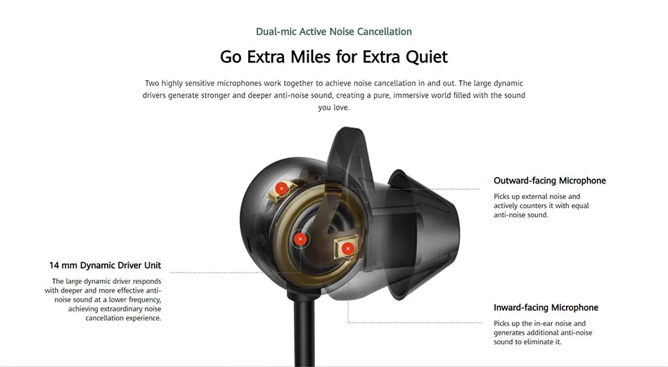 Cancelación activa de ruido de doble micrófono | 24hr. Reproducción | HUAWEI HiPair