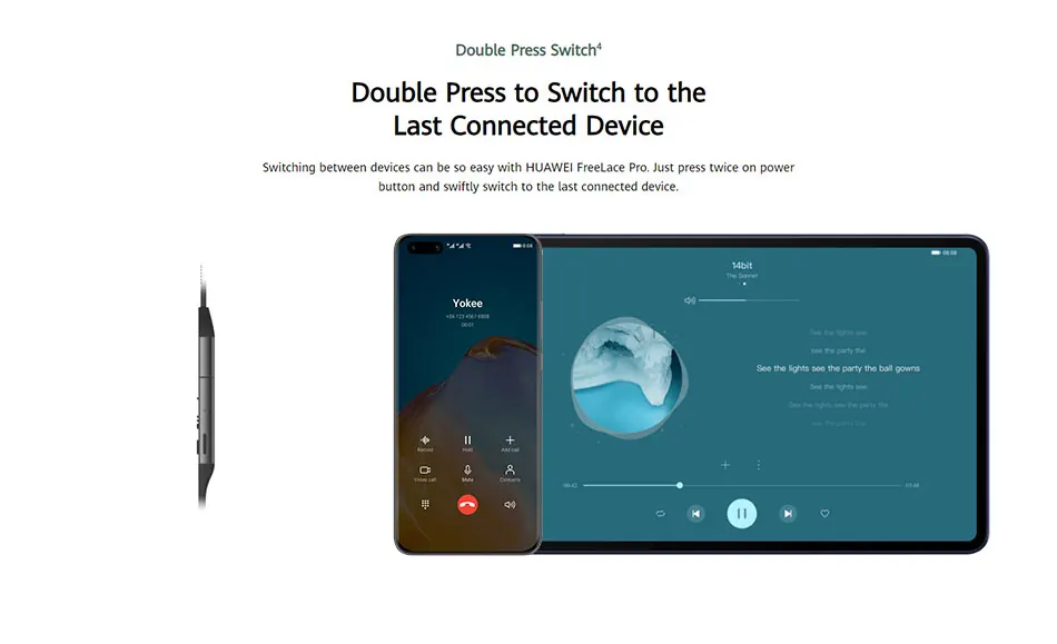 Cambiar entre dispositivos puede ser muy fácil con HUAWEI FreeLace Pro. Simplemente presione dos veces el botón de encendido y cambie rápidamente al último dispositivo conectado.