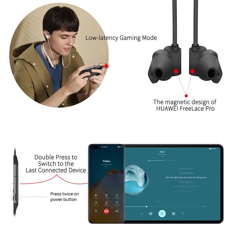 Cambiar entre dispositivos puede ser muy fácil con HUAWEI FreeLace Pro. Simplemente presione dos veces el botón de encendido y cambie rápidamente al último dispositivo conectado.