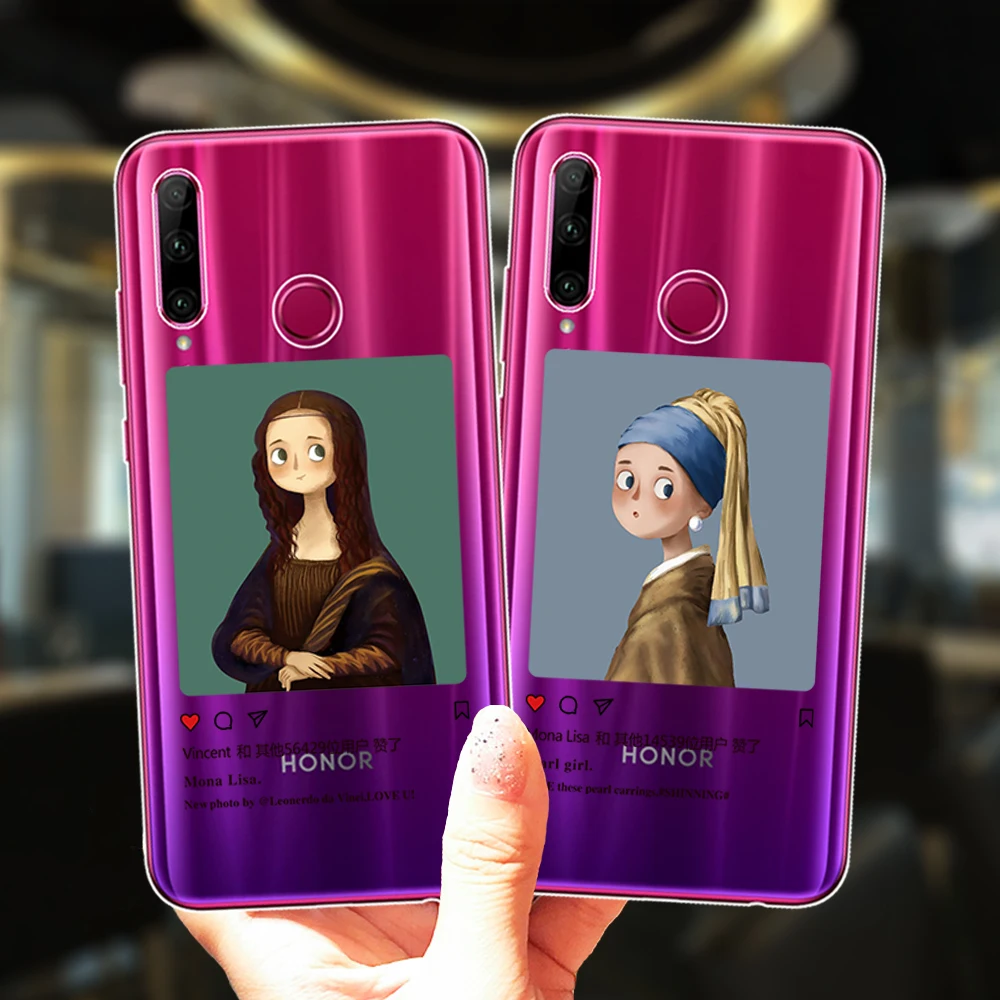 Comprar Para Huawei Honor 20 Lite 10i 20i 30i 9 10 20 30 10X Lite 50 SE Pro 9X 8X funda Mona Lisa Pearl Wreath Girl Oil Silicone Cover