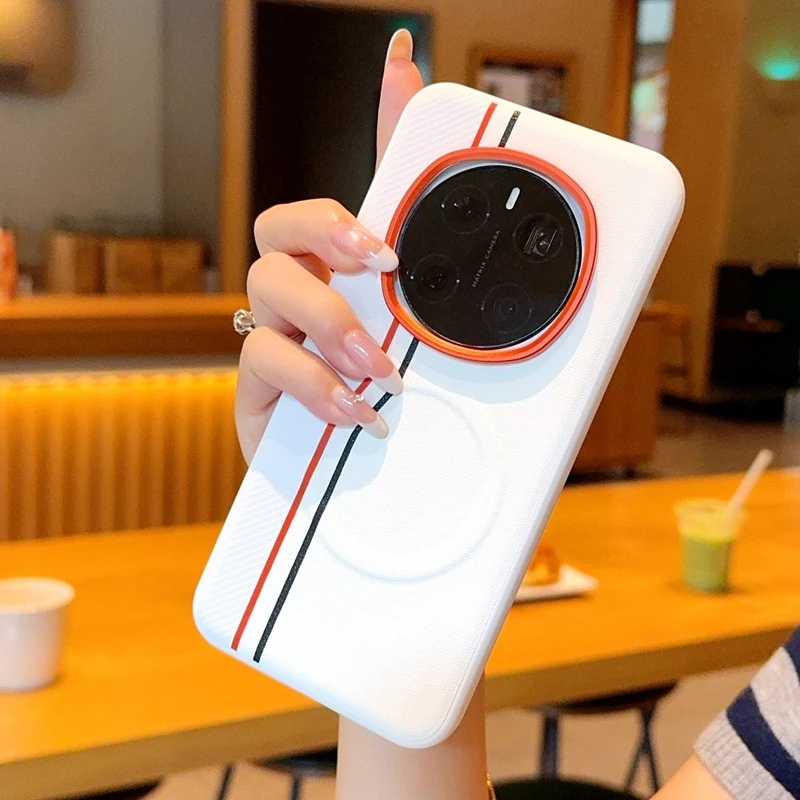 Para Huawei Honor Magic 7 Pro funda de lujo dura PU magnética carga inalámbrica cubierta trasera protectora para Magic 7 6 Pro 7RSR Shell