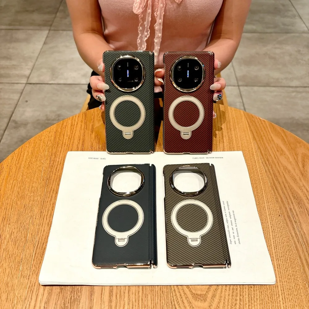 Para Huawei Honor Magic V5 funda dura de fibra de carbono soporte magnético carga inalámbrica cubierta trasera protectora para Magic V5 Shell