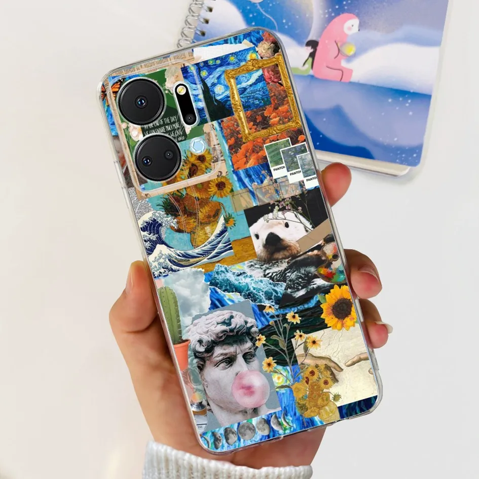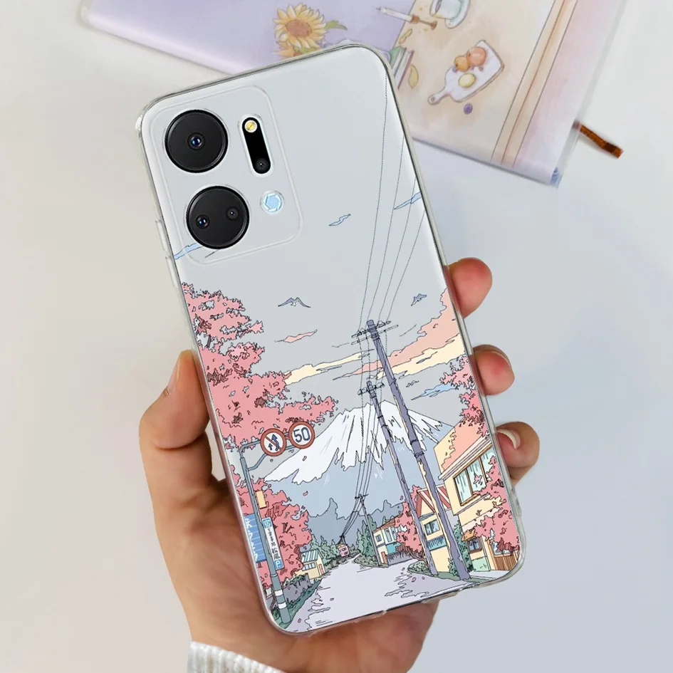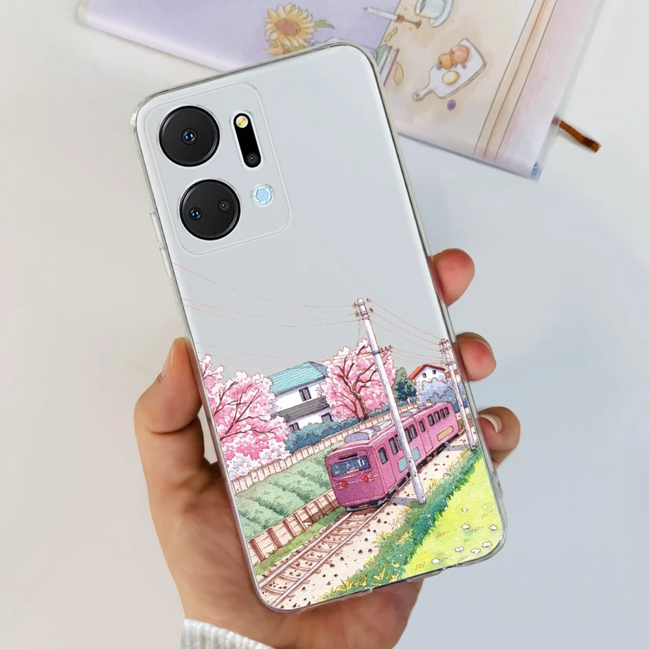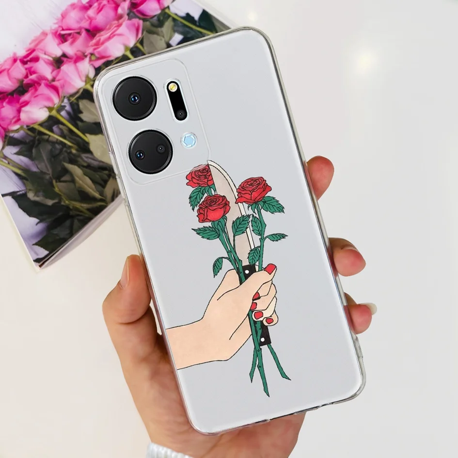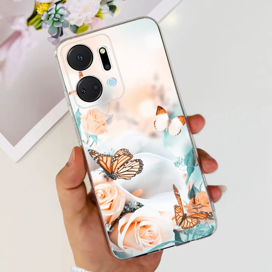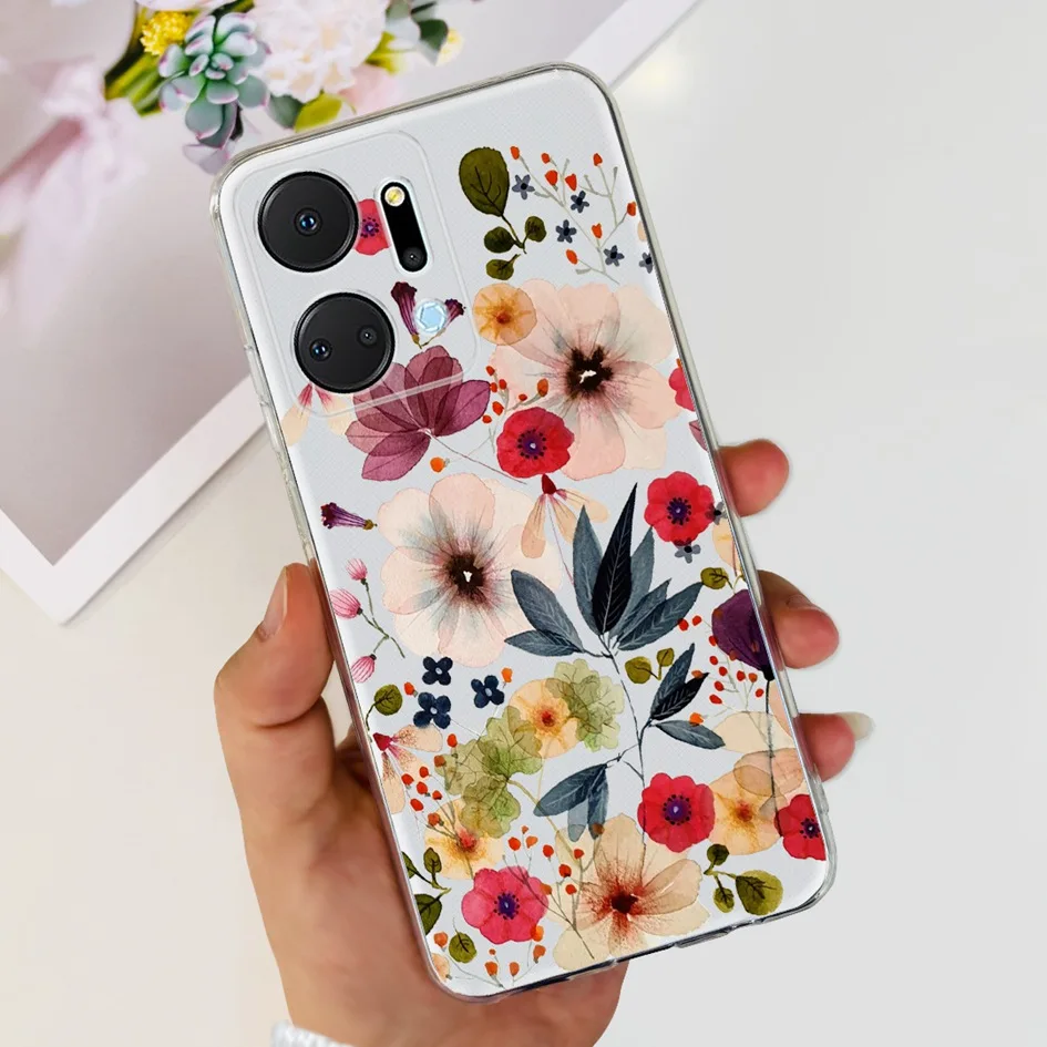 For Huawei Honor X7a 4G Case Popular Flower Printed Bumper Soft Back Protective Cover For HonorX7A RKY-LX2 X 7A Phone Case Coque