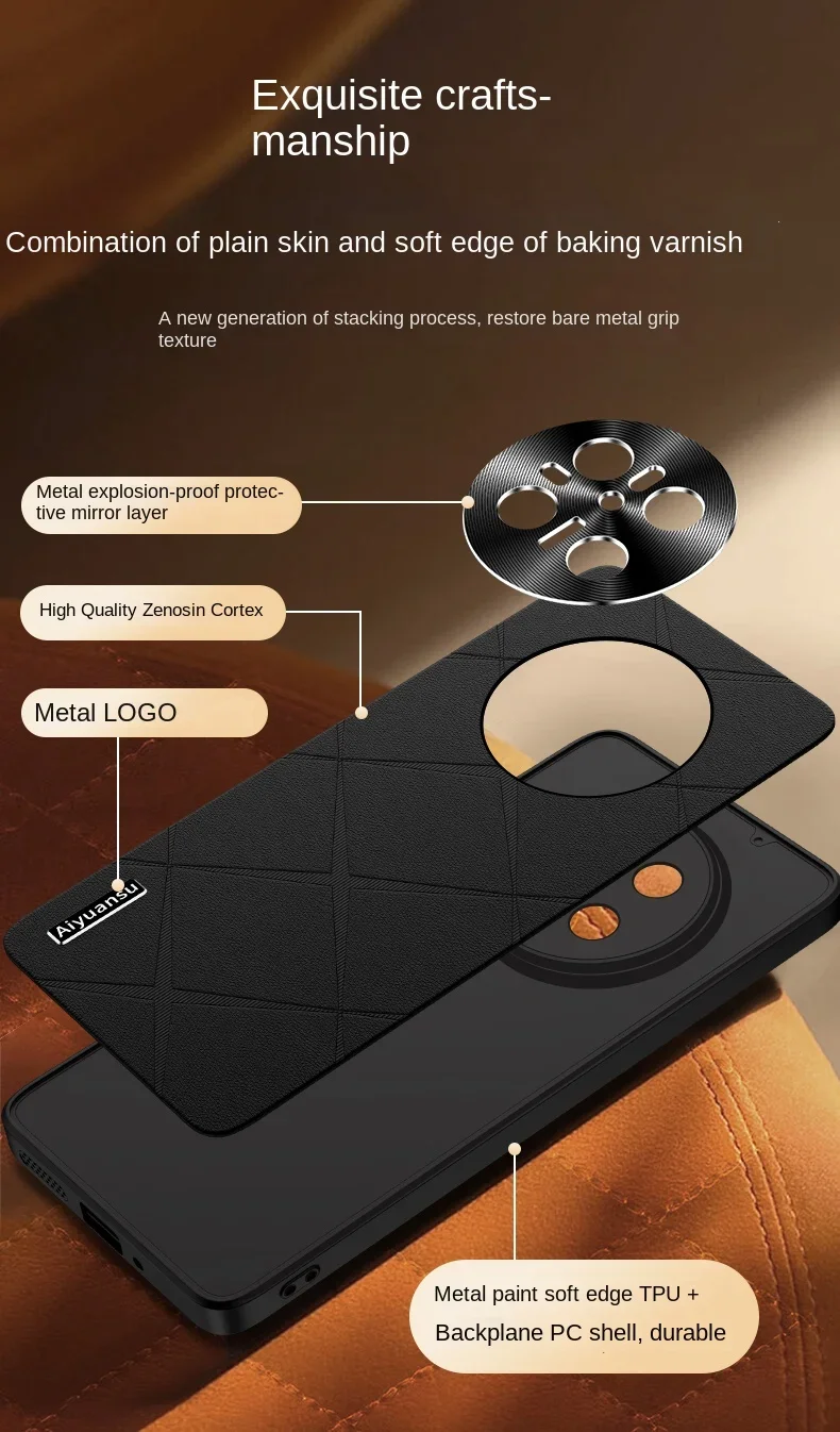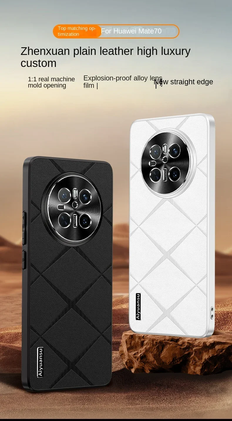 Comprar Para Huawei Mate 70 70 Pro 70 Pro Plus funda de teléfono anticaída y antihuellas con protección de lente metálica de cuero vegano de alto lujo