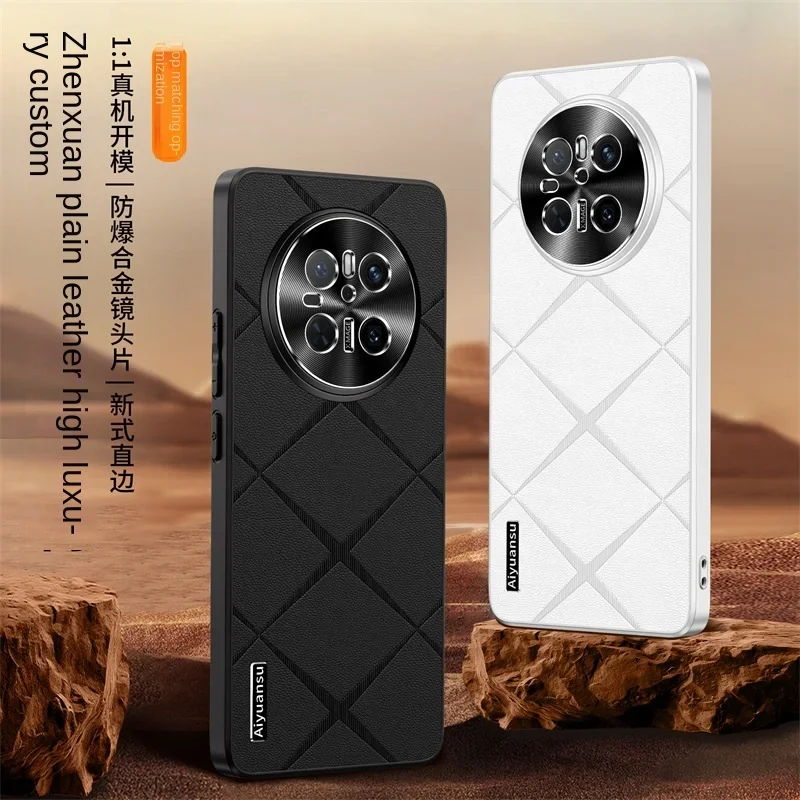 Comprar Para Huawei Mate 70 70 Pro 70 Pro Plus funda de teléfono anticaída y antihuellas con protección de lente metálica de cuero vegano de alto lujo