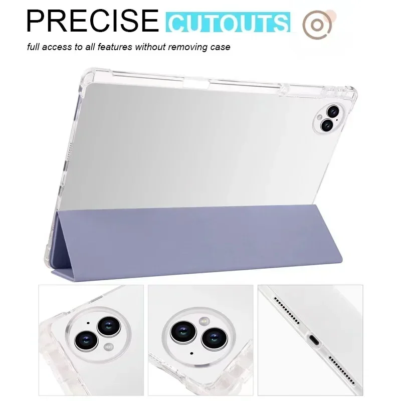 Especificación1. Parte delantera de cuero PU + parte trasera de TPU suave y transparente 2. La cubierta plegable triple se puede plegar como soporte. 3. Diseño de lujo y moda, se adapta perfectamente a la forma. 4. Forro de microfibra suave, antiarañazos, proporciona protección integral. 5. Sin cierre magnético 6. Compatible con funda adecuada: Para Huawei Matepad Pro 12.2 2024 MRO-W00 W10 Para Huawei Matepad Pro 12.2 2025