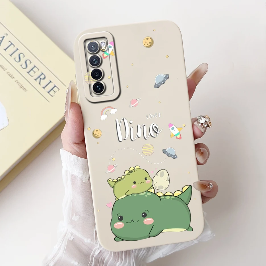 Para Huawei Nova 7 5G funda bonita de dibujos animados de dinosaurio funda de teléfono a prueba de golpes para Huawei Nova 7 Pro Nova7 SE Fundas de TPU suave Coque